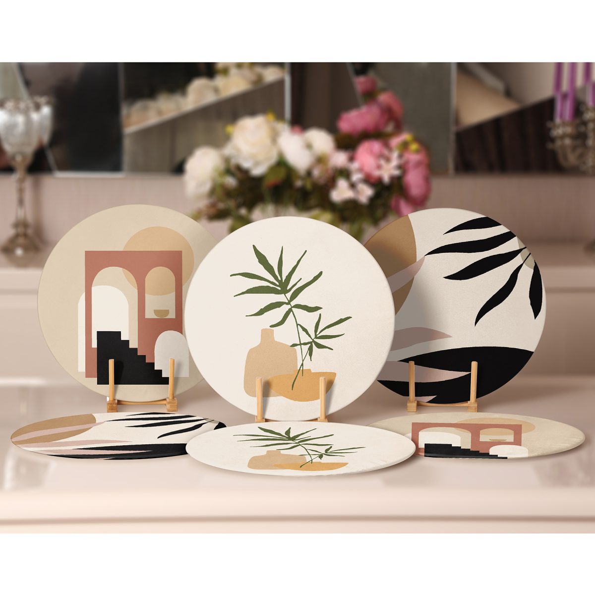6'lı Bohem Tasarımlı Dijital Baskılı Özel Tasarım Yuvarlak Servis Altlığı & Supla Realhomes