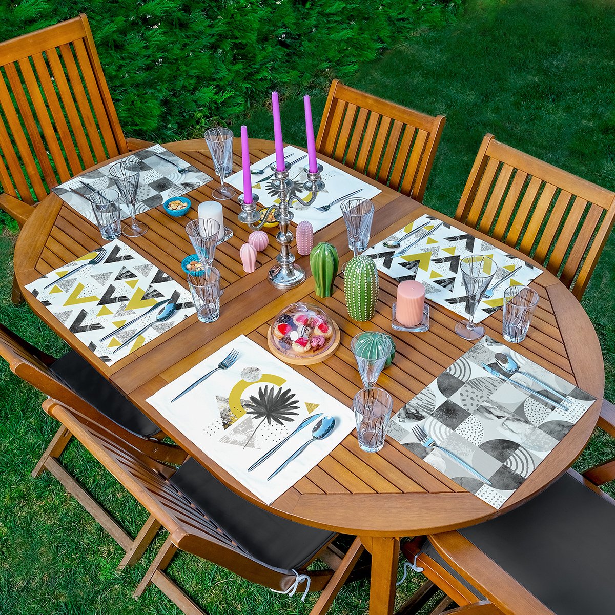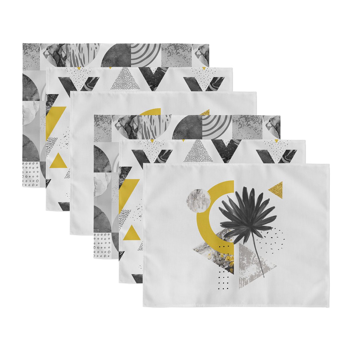 6'lı Geometrik Üçgen Tasarımlı Tropik Yaprak Motifli Dijital Baskılı Sunum Altlığı - Amerikan Servis Seti Realhomes