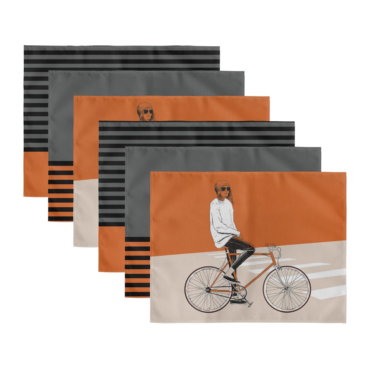 6'lı Kiremit Renkli Bisikletli Adam Çizgili Tasarımlı Sunum Altlığı - Amerikan Servis Seti Realhomes
