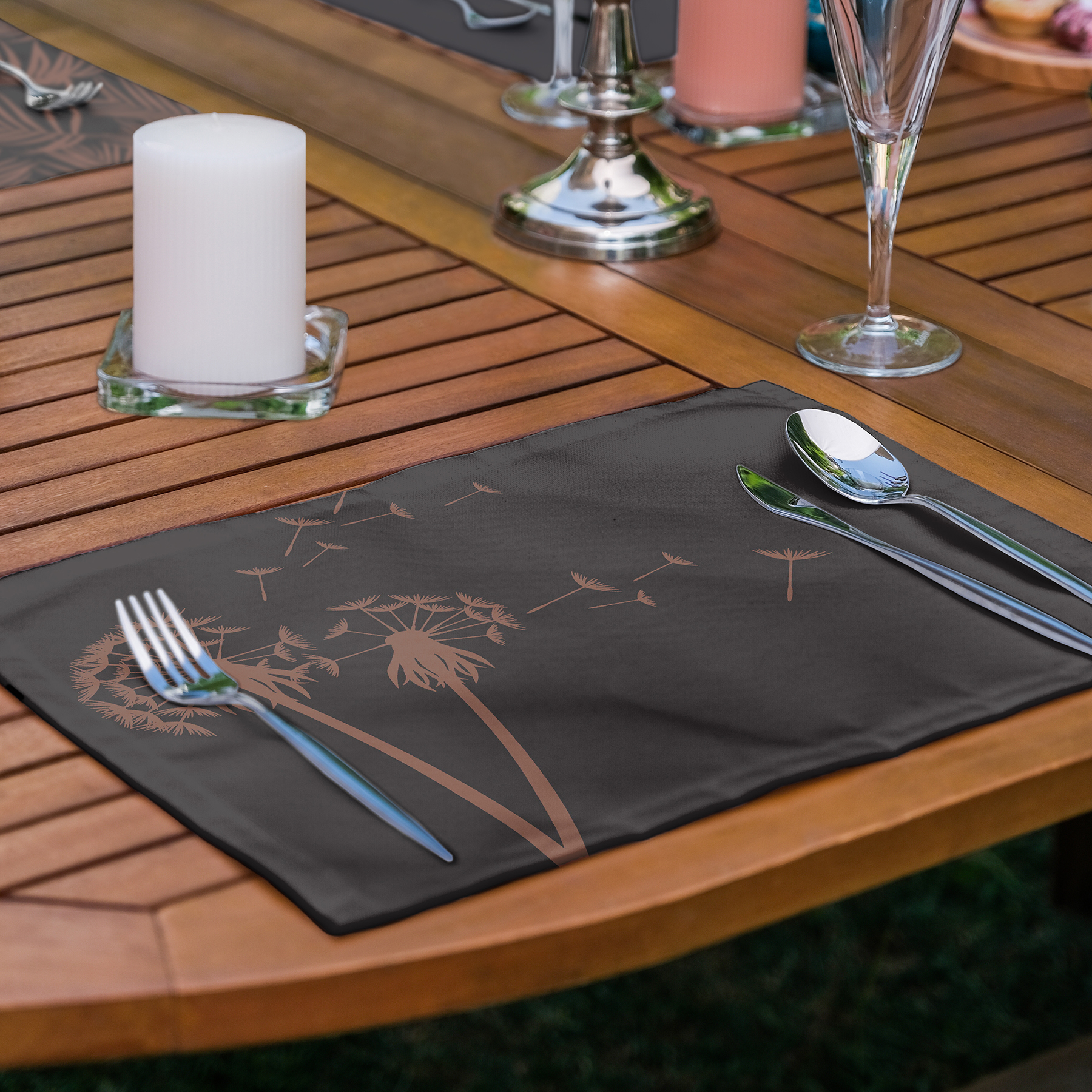 6'lı Koyu Temalı Tropik Yaprak Karahindiba Tasarımlı Sunum Altlığı - Amerikan Servis Seti Realhomes
