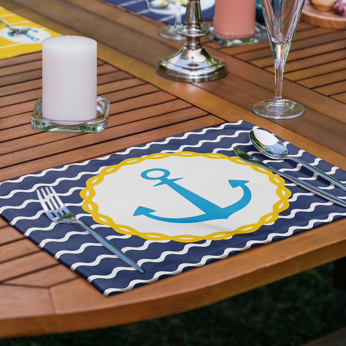 6'lı Mavi & Sarı Renkli Çapa Tasarımlı Amerikan Servis Seti Realhomes