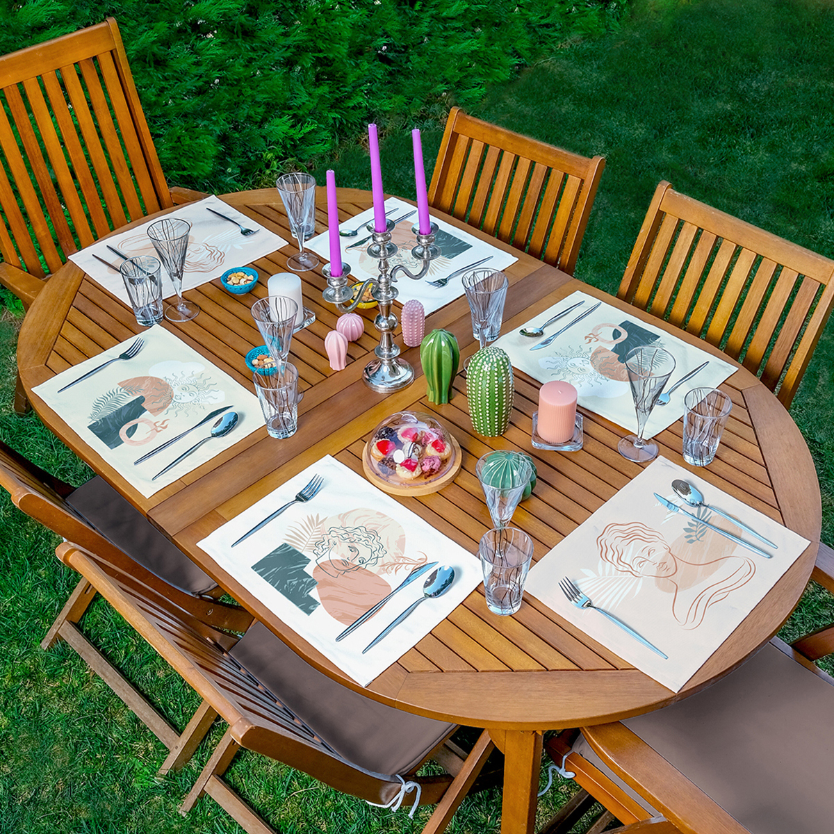 RealHomes Dijital Baskılı 6’lı Amerikan Servis seti, kumaş seçimi ve desen detaylarıyla şık bir dekorasyon ögesi olarak kullanımınıza sunulmaktadır. Her bir desen RealHomes tasarımcıları tarafından özenle tasarlanmış ve satışa sunulmuştur. Fotoğraf kalitesinde canlı ve gerçekçi baskılarımız yıkamaya ve kullanıma bağlı olarak solma yapmaz, yıllar boyu ilk günkü özelliğini korur.