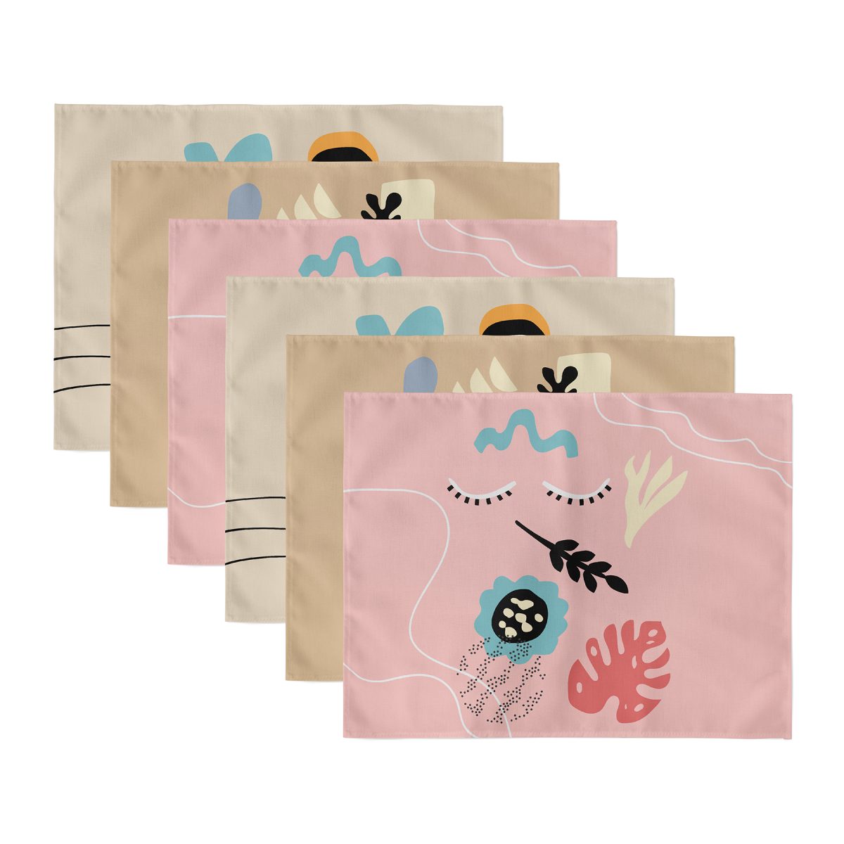 6’lı Renkli Çiçek Tasarımlı Onedraw Temalı Dekoratif Sunum Altlığı – Amerikan Servis Seti