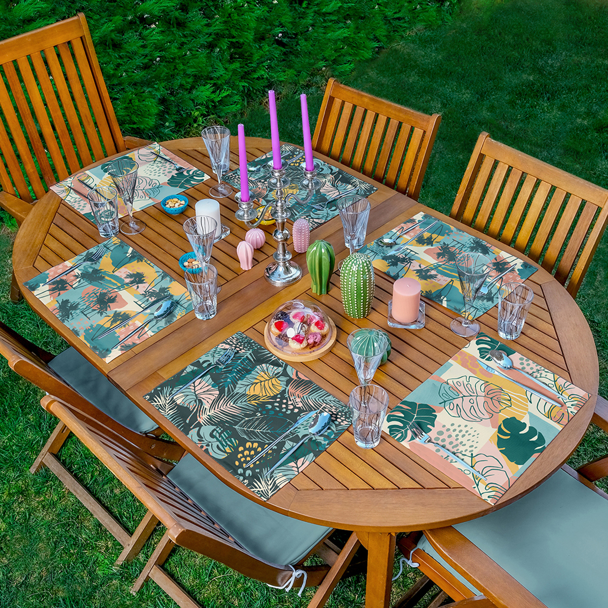 6'lı Renkli Tropik Yaprak Motifli Amerikan Servis Seti Realhomes