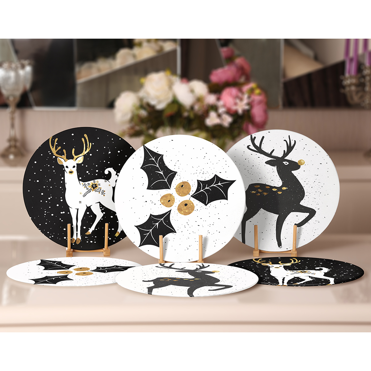 6’lı Siyah Beyaz Gold Detaylı Yılbaşı Temalı Servis Altlığı & Supla