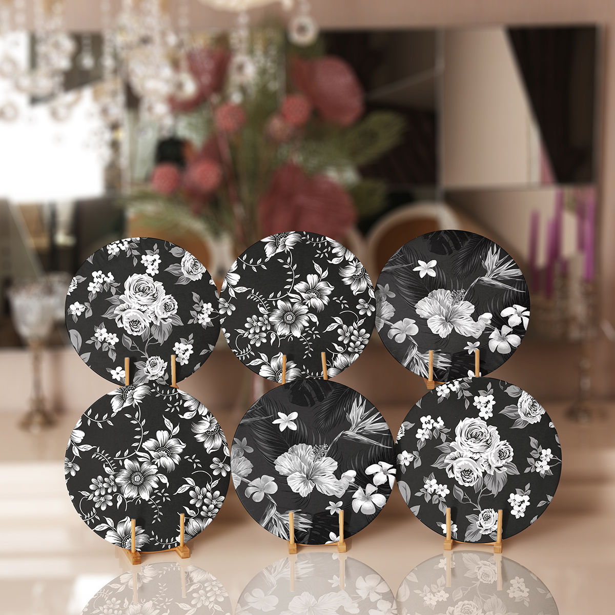 6’lı Siyah Beyaz Gül Motifli Servis Altlığı & Supla