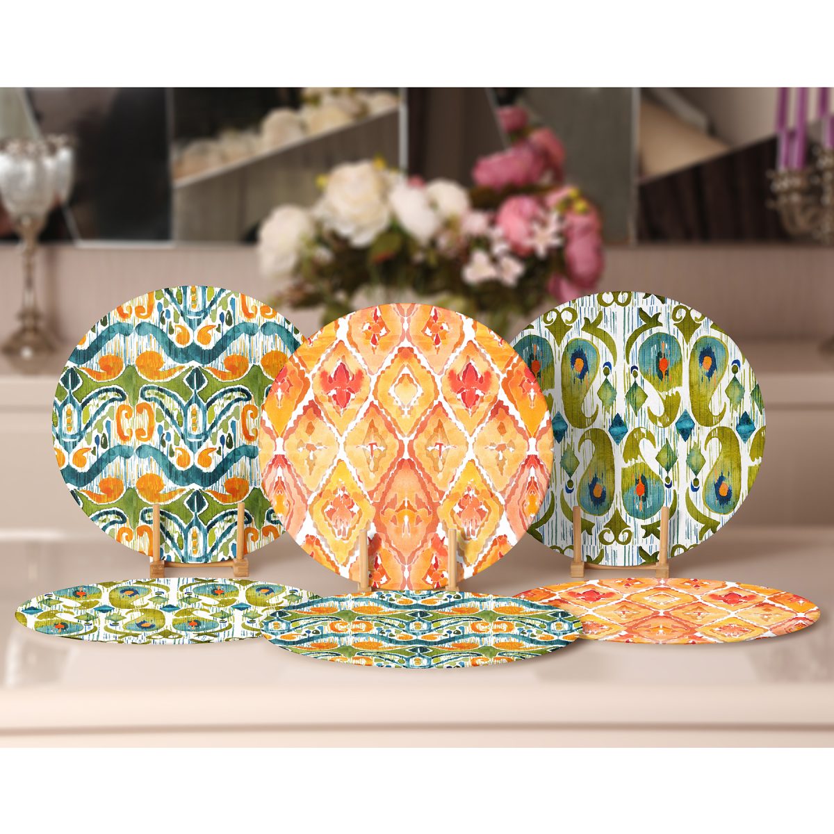 6'lı Turuncu Yeşil Renkli Suluboya Tasarımlı Dekoratif Yuvarlak Servis Altlığı & Supla Realhomes