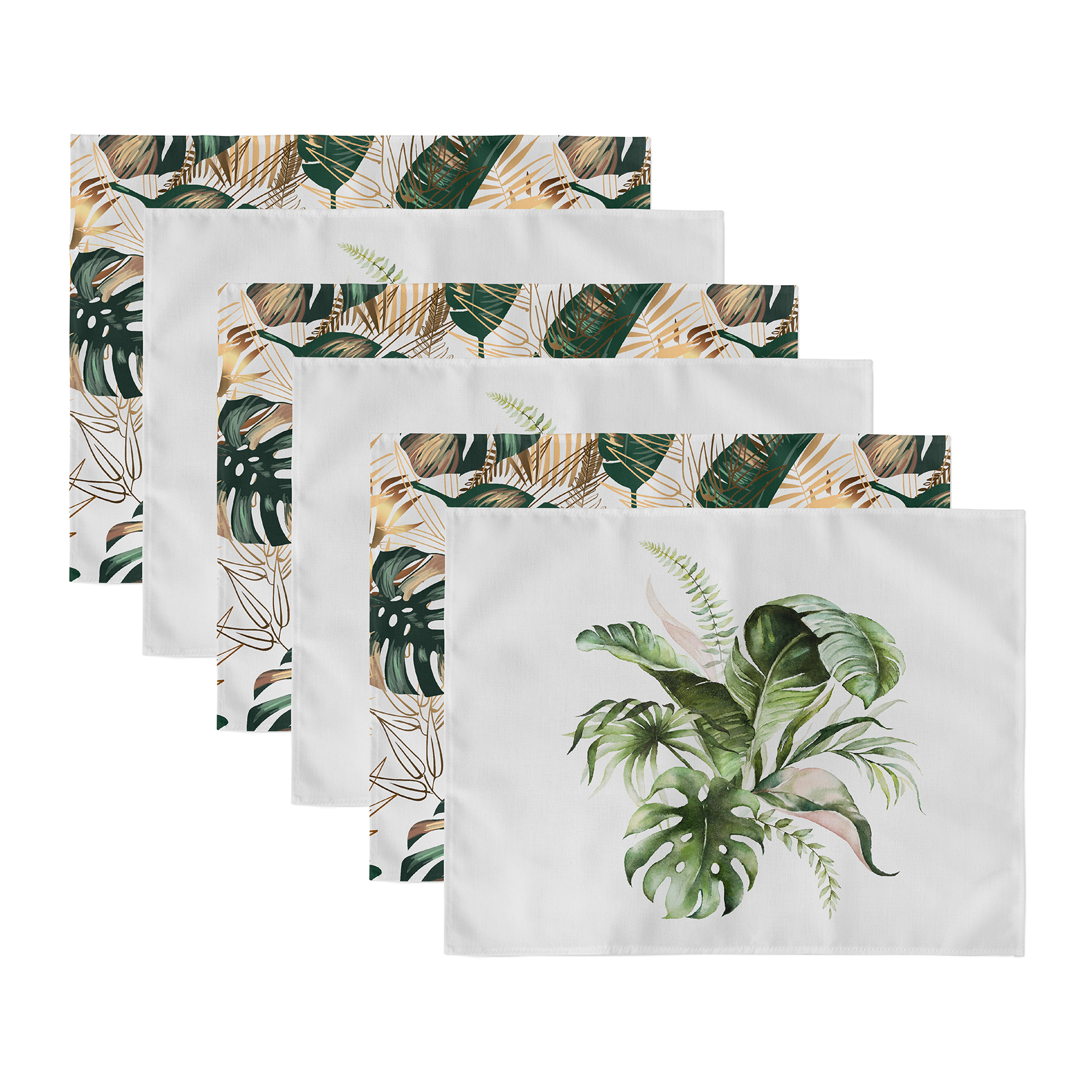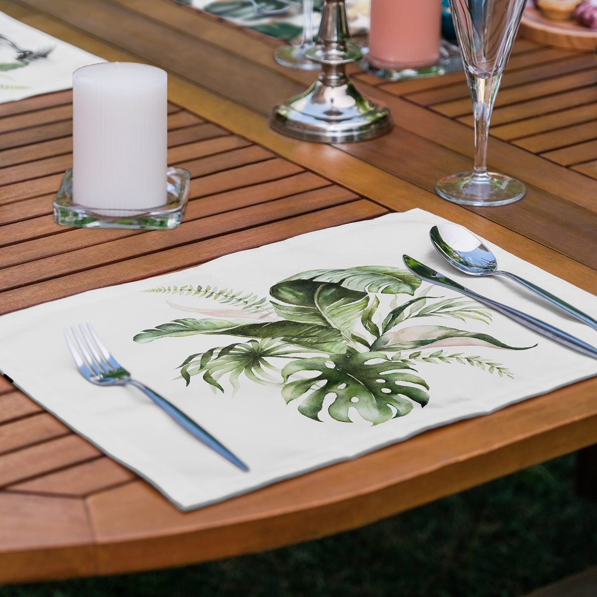 6'lı Yeşil Tropik Yaprak Özel Tasarımlı Dijital Baskılı Sunum Altlığı - Amerikan Servis Seti Realhomes