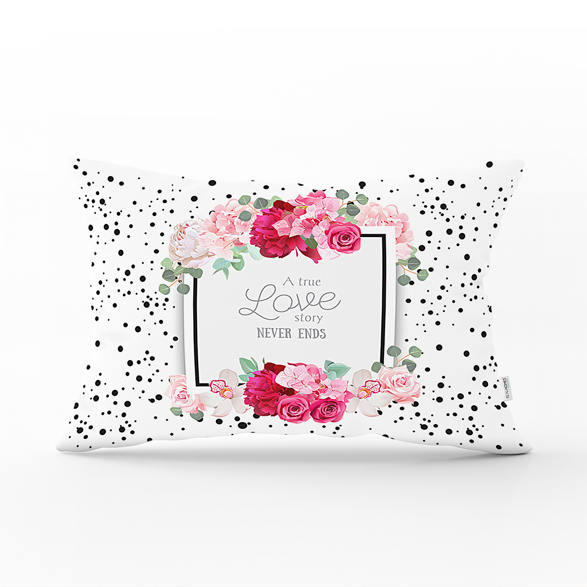 A True Love Story Baskılı Dijital Dikdörtgen Yastık Kırlent Kılıfı