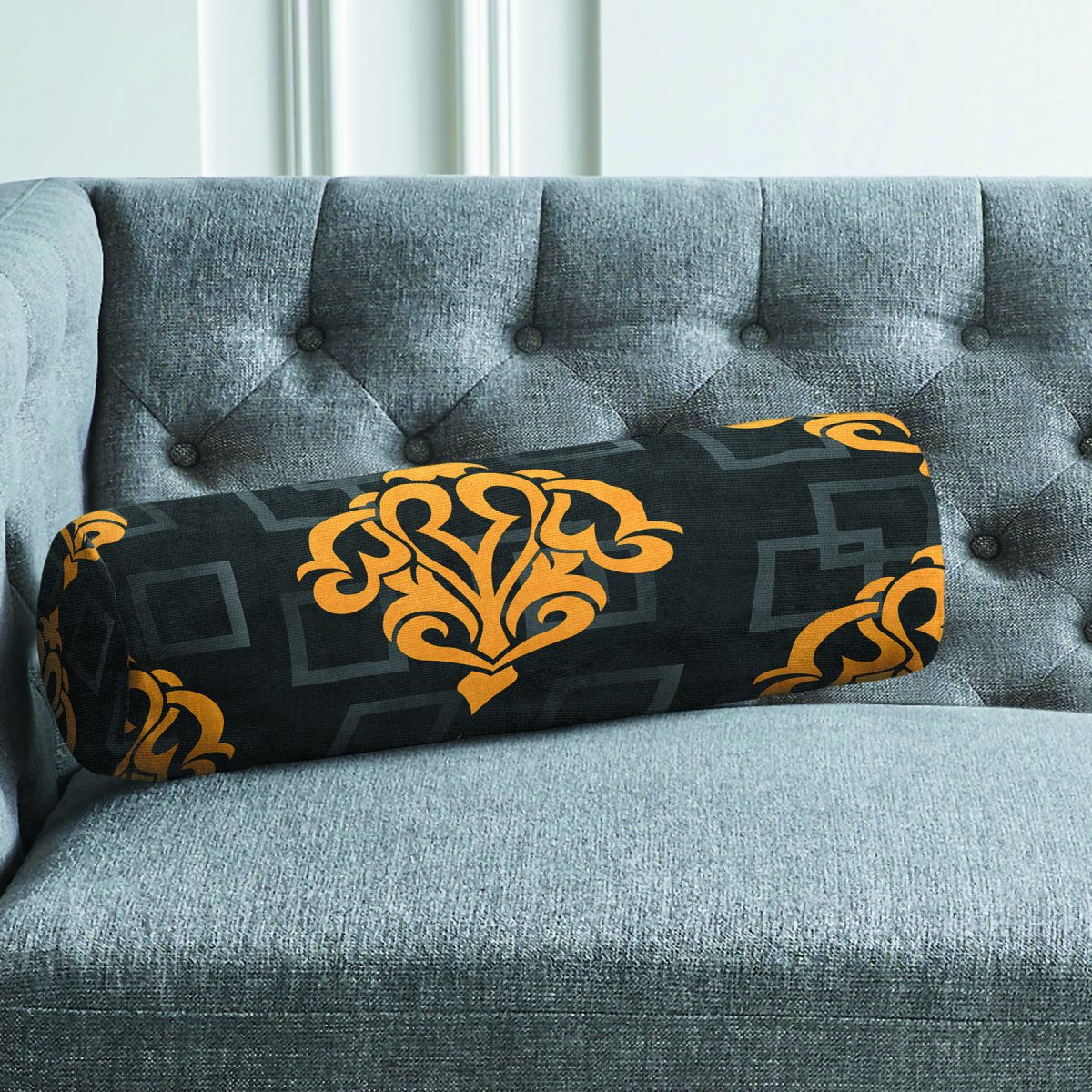 Abstrac Temalı Gold Detaylı Özel Tasarım İç Dolgulu Yumuşak Silindir Form Yastık Kırlent