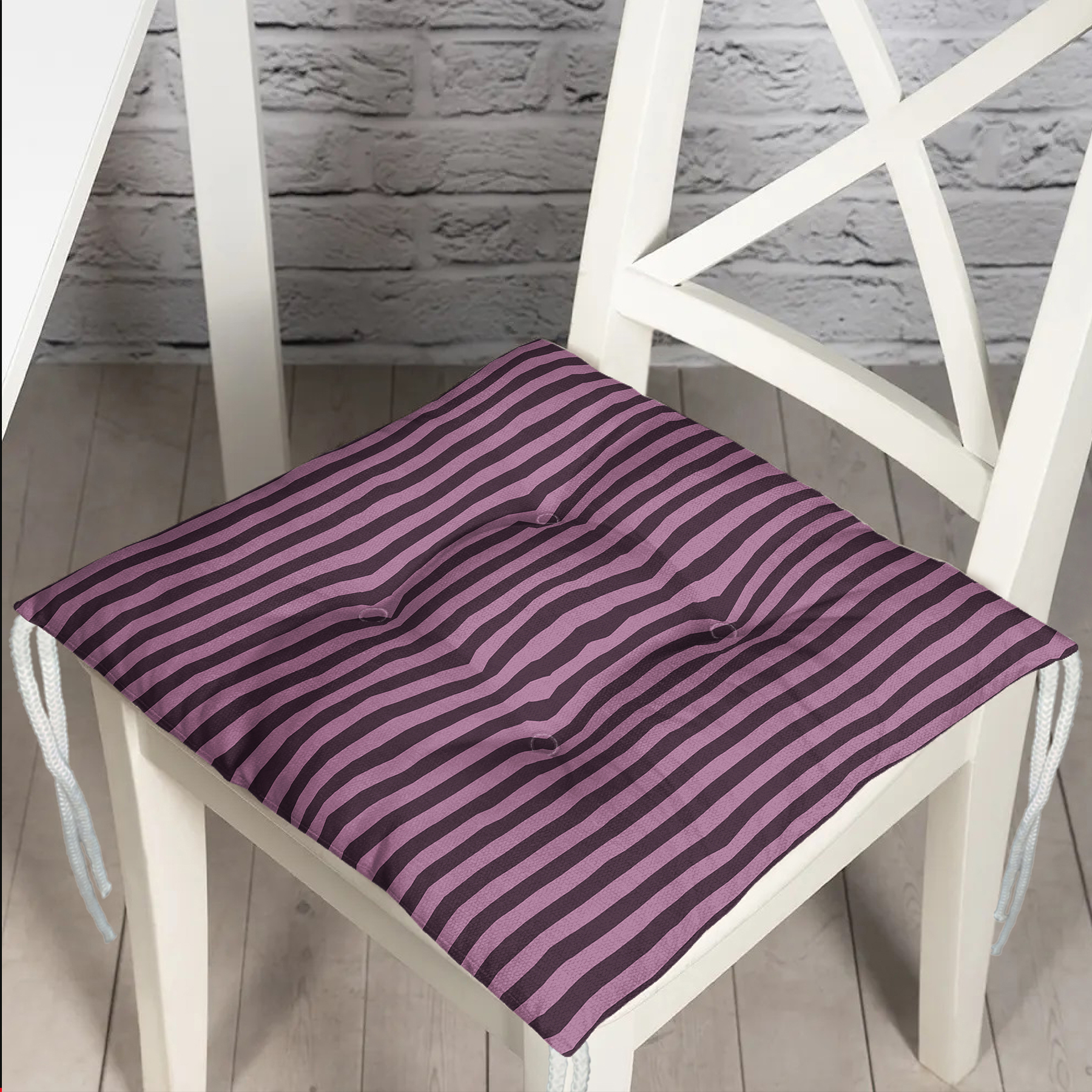 Açık Koyu Mürdüm Renkli Çizgi Tasarımlı Pofuduk Sandalye Minderi Realhomes