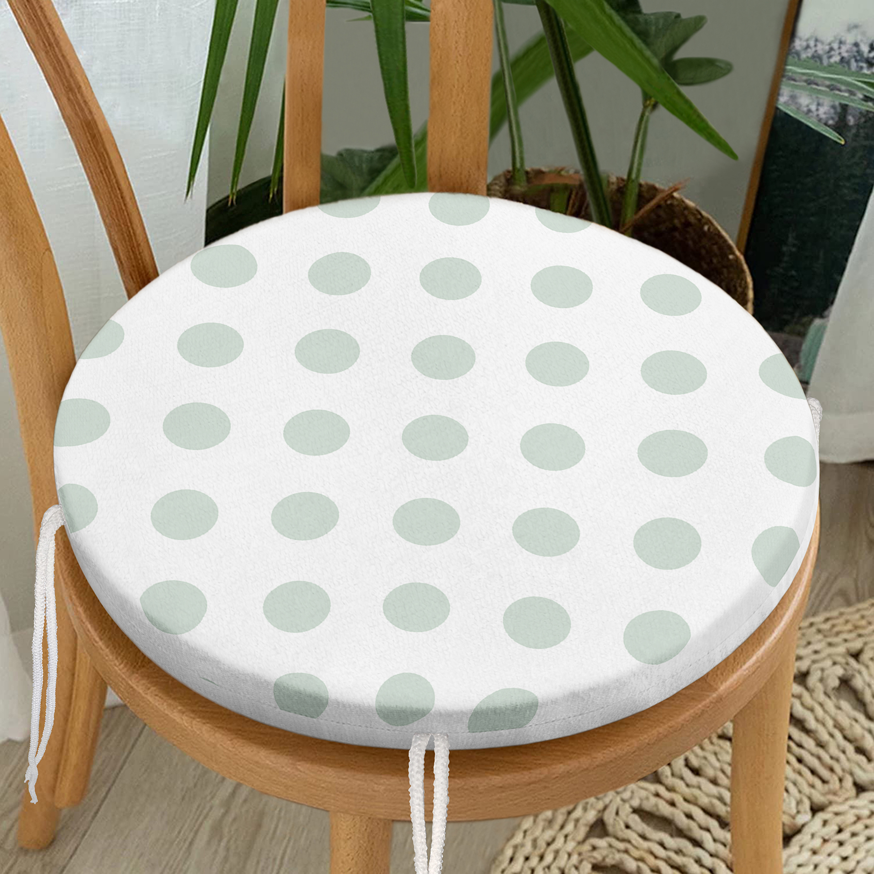 Açık Mavi Puantiyeli Dijital Baskılı Modern Yuvarlak Fermuarlı Sandalye Minderi