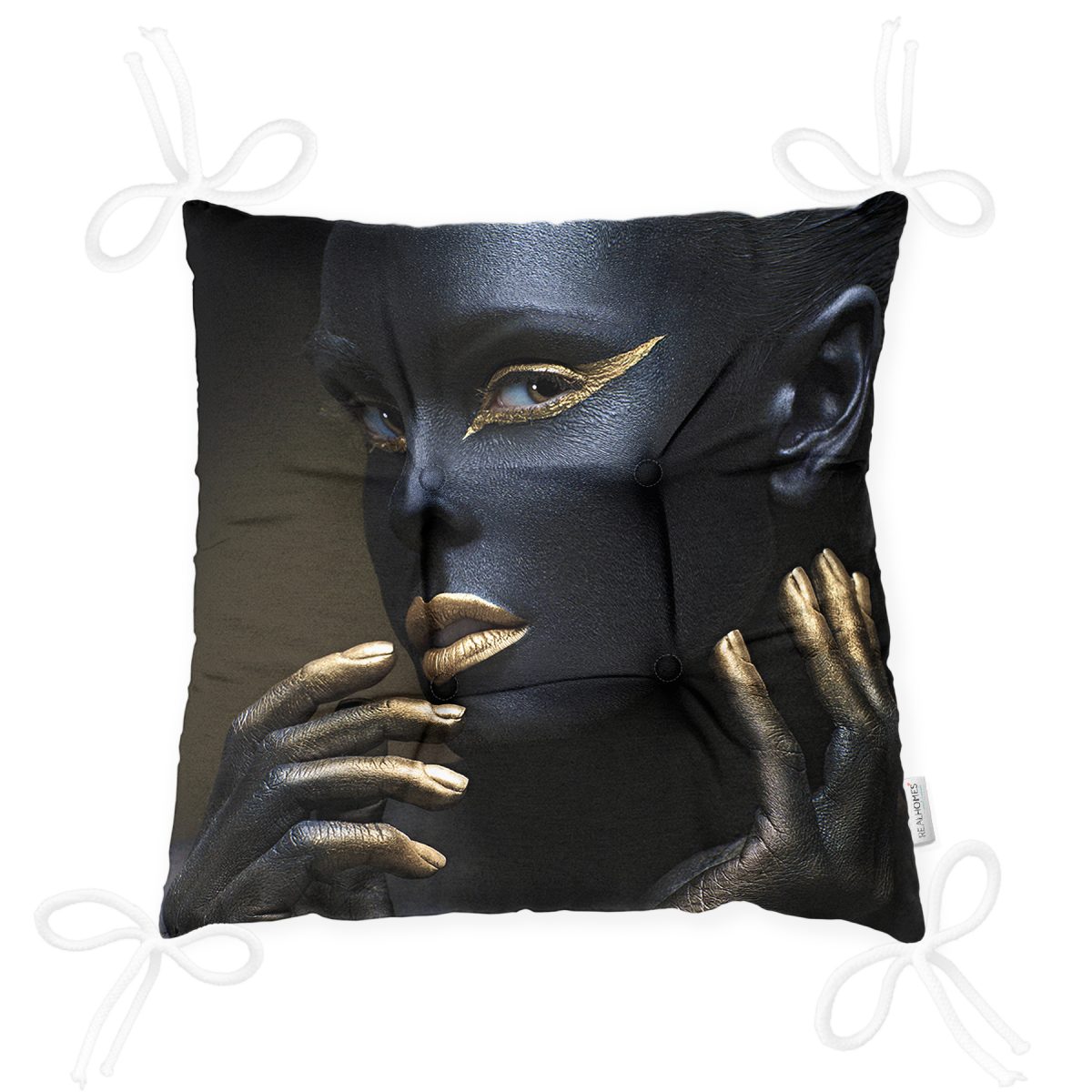 African Gold Kadın Özel Tasarımlı Dekoratif Pofuduk Sandalye Minderi Realhomes