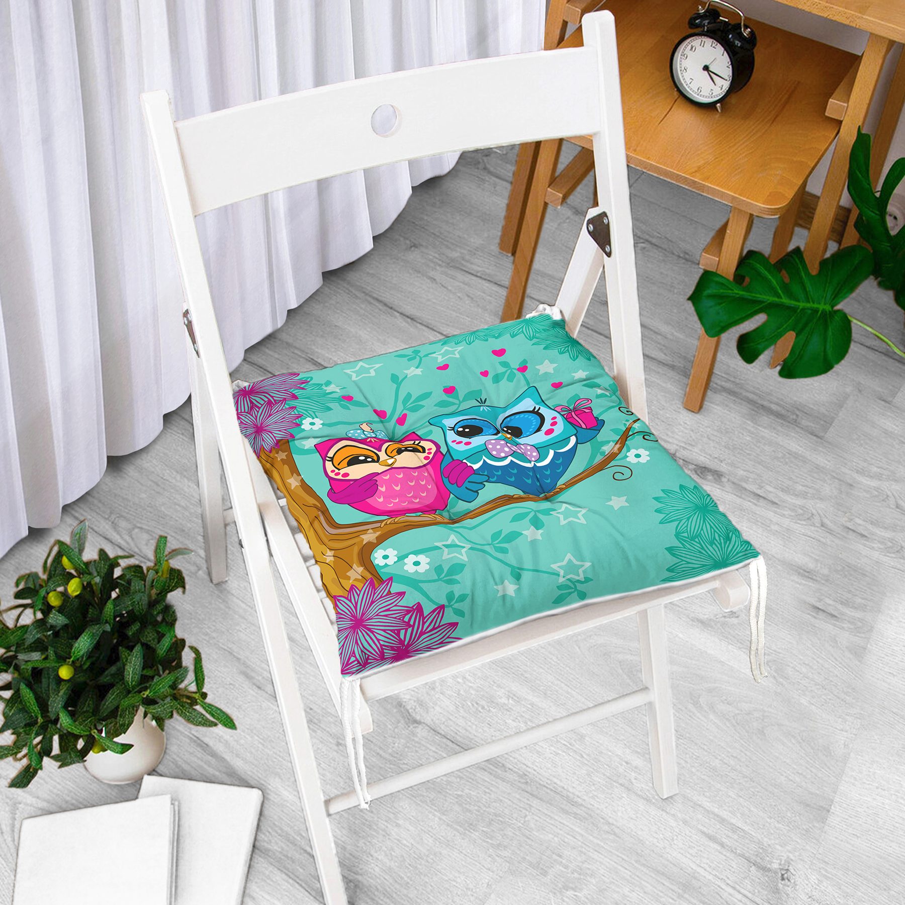 Ağaçta Sevimli Baykuşlar Modern Tasarım Dijital Baskılı Pofuduk Sandalye Minderi Realhomes