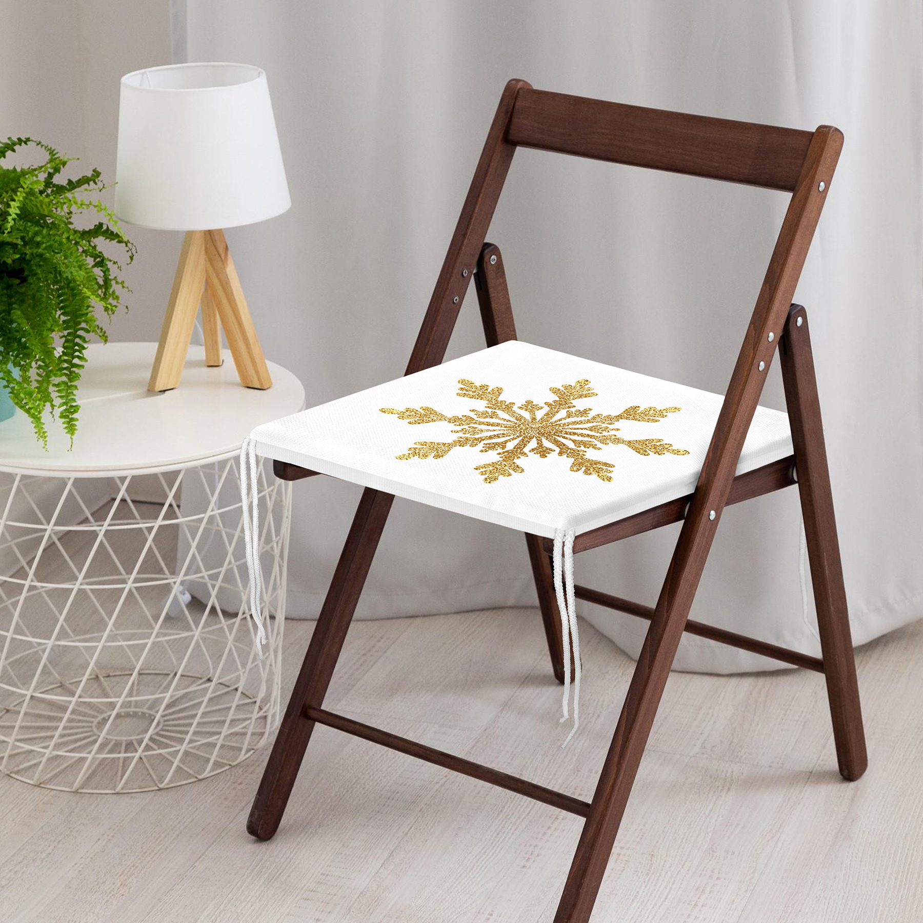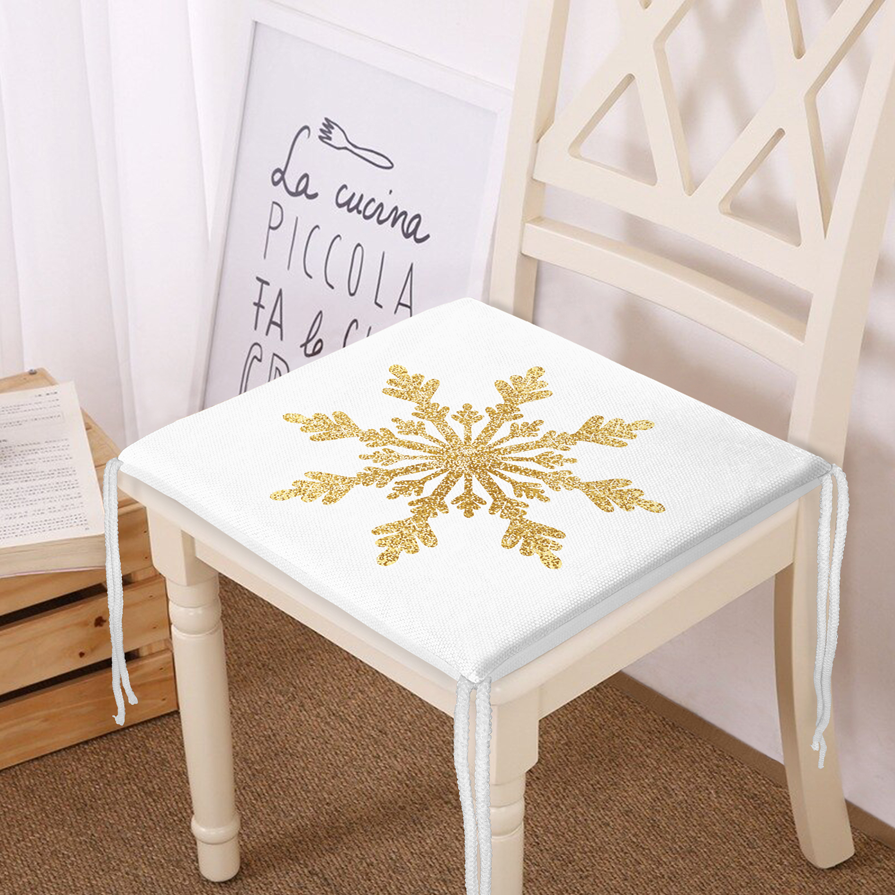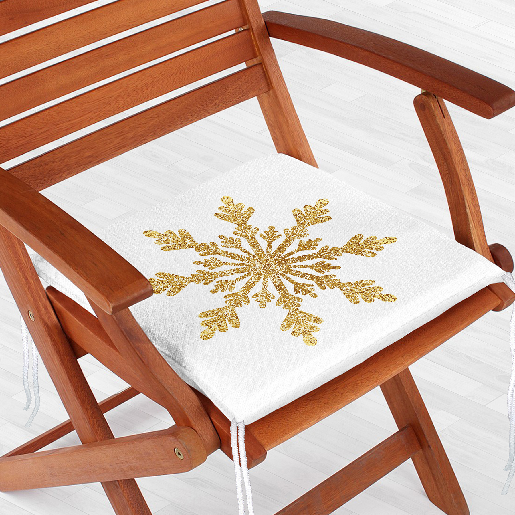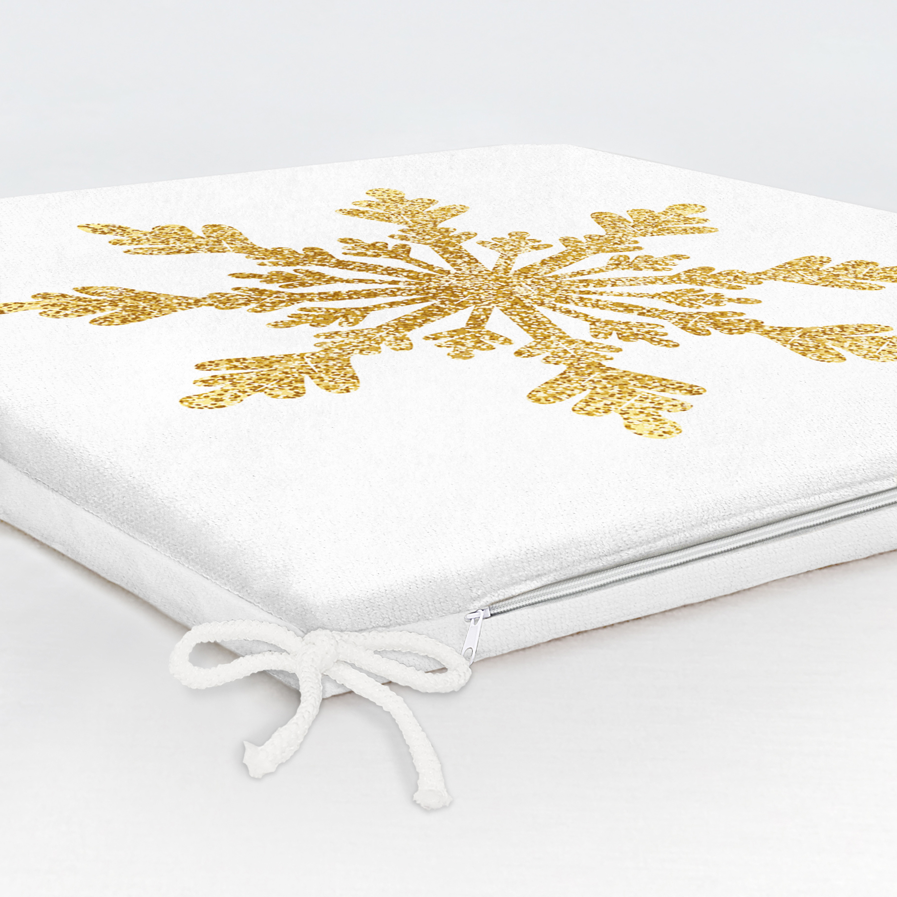 Altın Görünümlü Kar Tanesi Desenli 3D Modern Fermuarlı Sandalye Minderi
