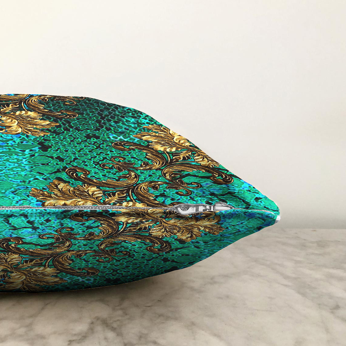 Altın Motifli Özel Tasarım Dijital Baskılı Modern Raşel Kadife Yastık Kırlent Kılıfı