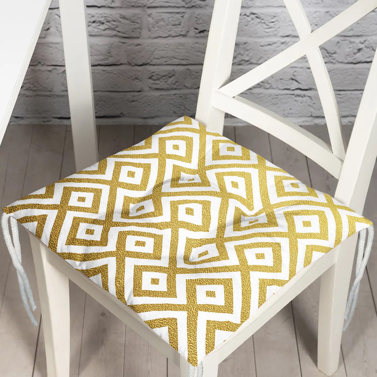 Altın Renkli Geometrik Desenli Özel Tasarım Pofuduk Sandalye Minderi