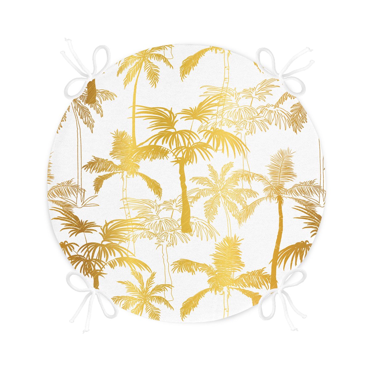 Altın Renkte Palmiyeler Özel Tasarımlı Yuvarlak Fermuarlı Sandalye Minderi