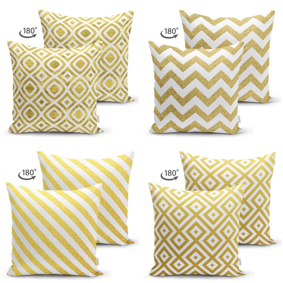 Altın Varaklı Geometrik 4'lü Çift Taraflı Süet Yastık Kırlent Kılıf Seti Realhomes