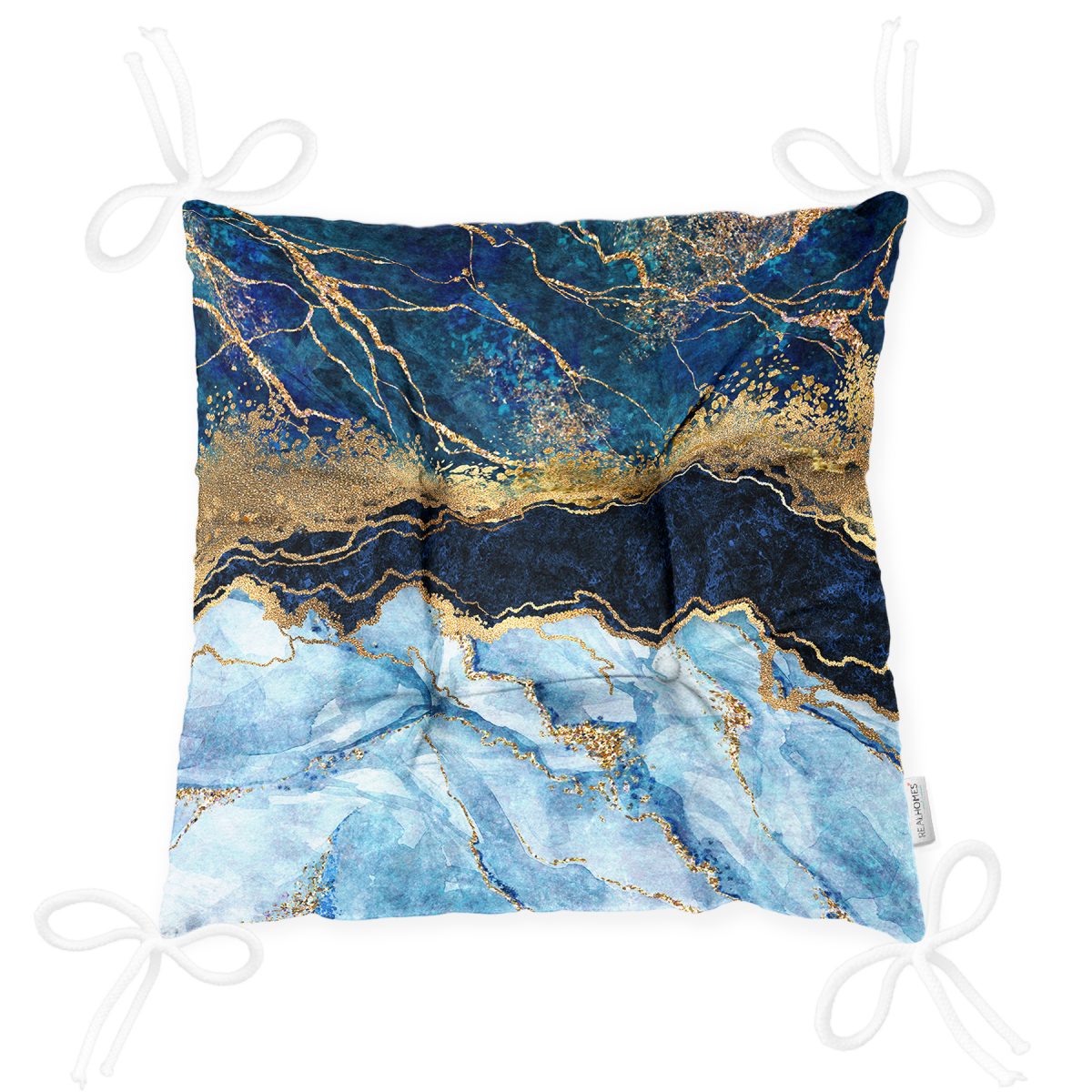 Altın Varaklı Mavi Zeminli Modern Pofuduk Sandalye Minderi