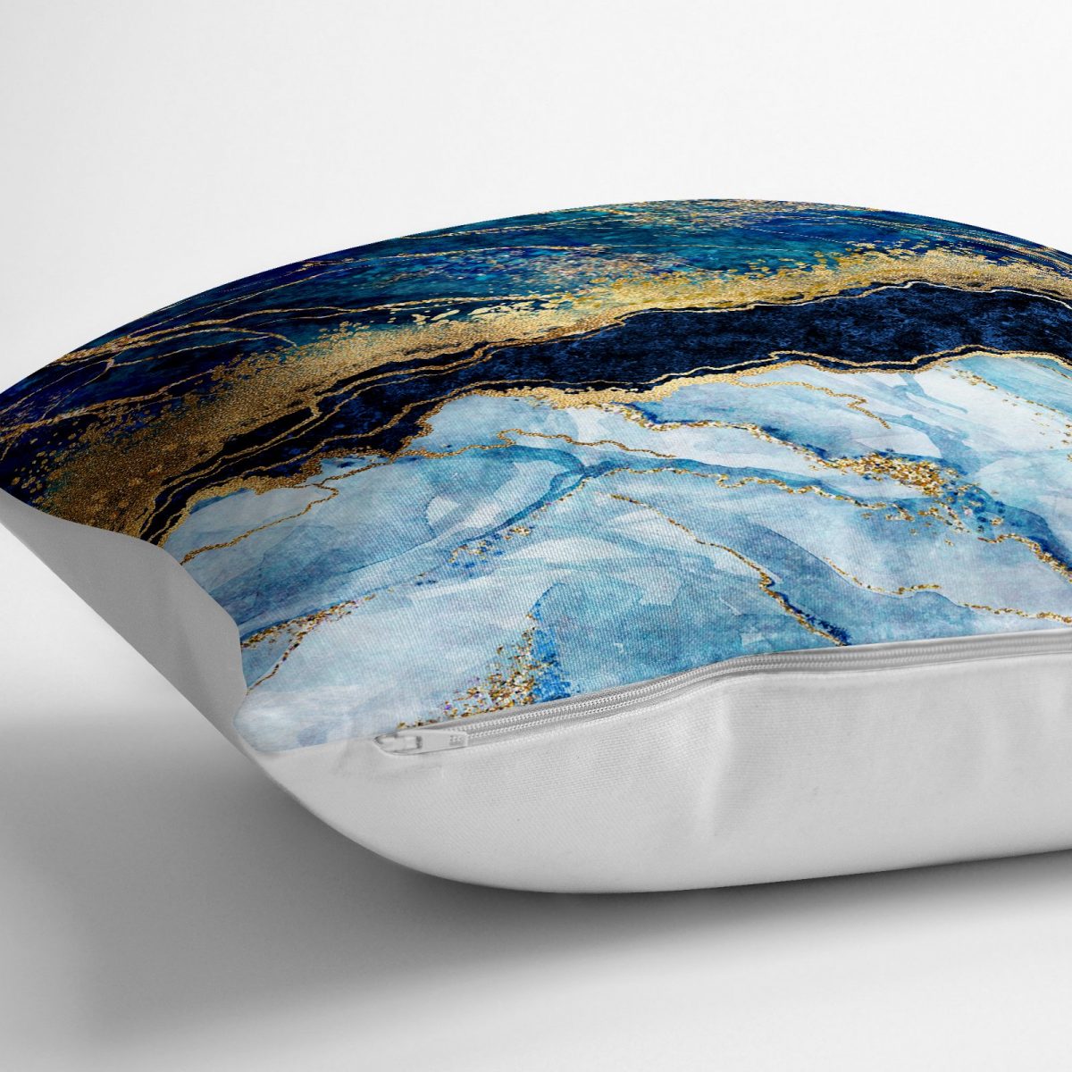 Altın Varaklı Mavi Zeminli Modern Yer Minderi – 70 x 70 cm