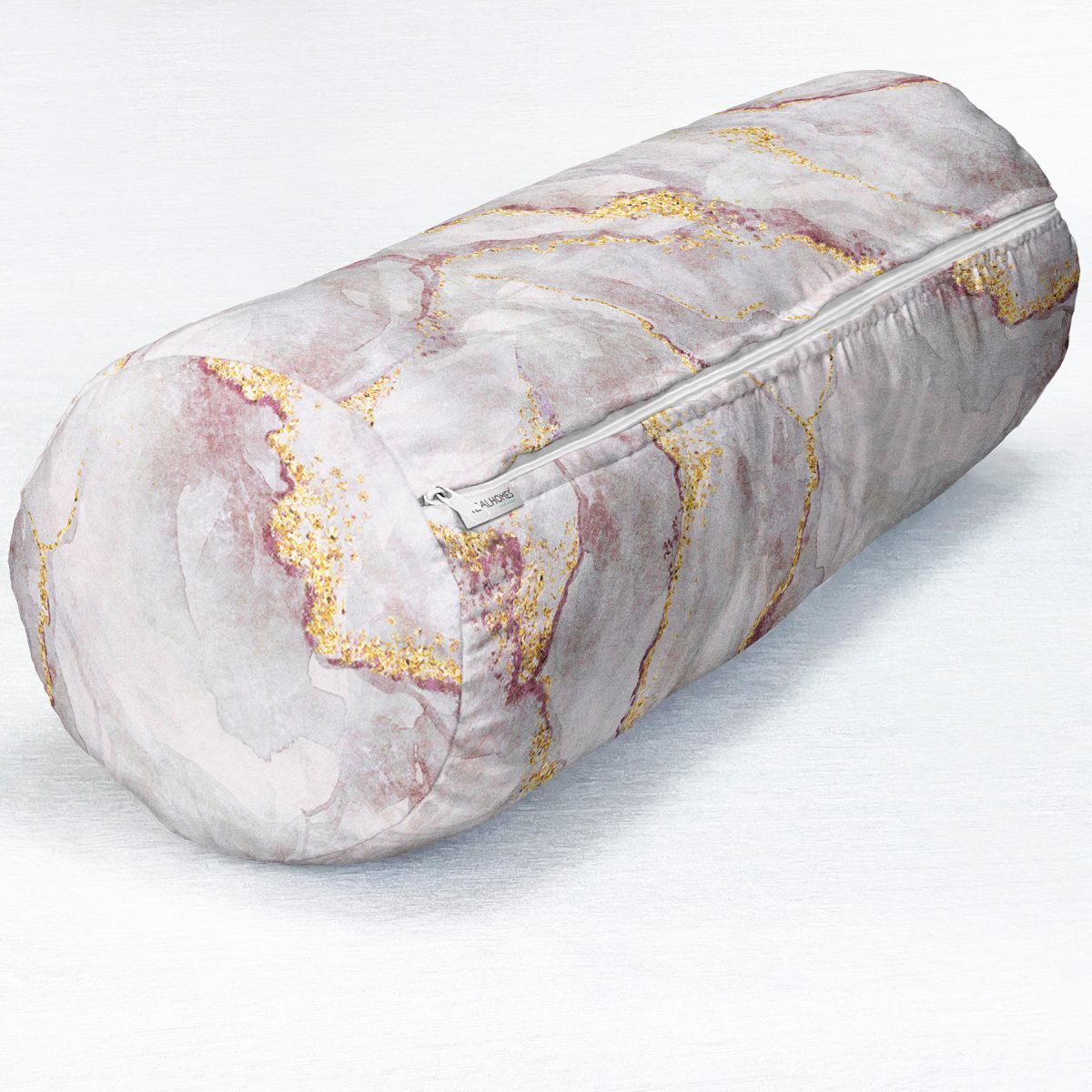 Altın Yaldız Çizgili Mermer Desenli Dekoratif İç Dolgulu Süet Silindir Yastık Kırlent – Bel Yastığı