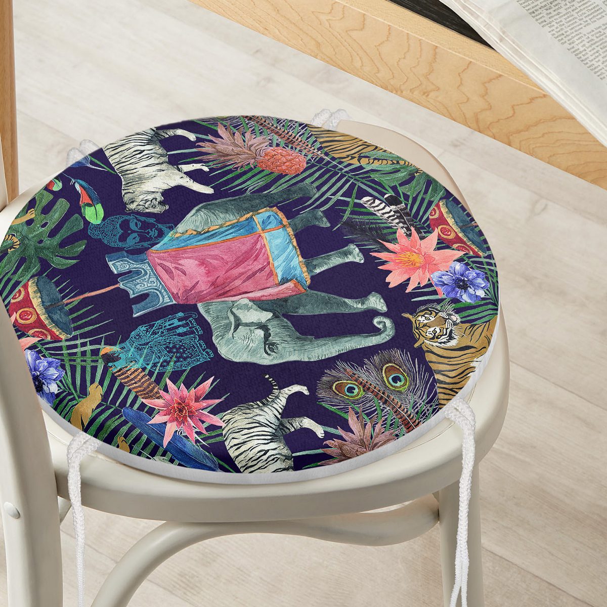 Amazon Etnik Fil Motifli Dijital Baskılı Modern Yuvarlak Fermuarlı Sandalye Minderi