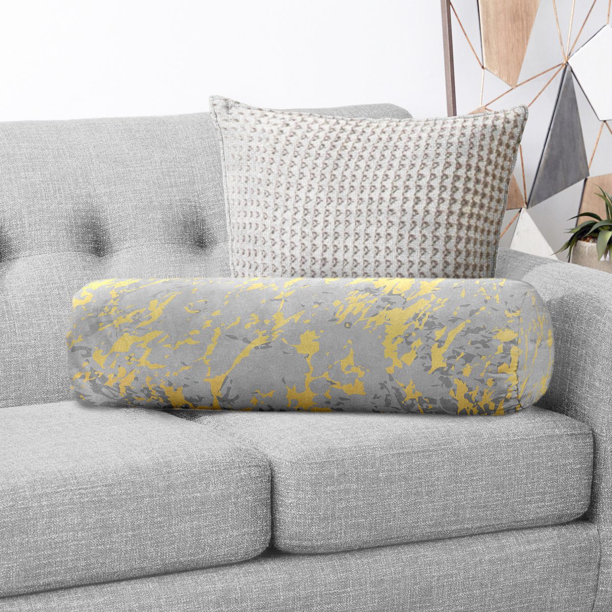 Antrasit Zemin Üzerinde Gold Detaylı Çizim Desenli Dijital Baskılı Modern İç Dolgulu – Fermuarlı Süet Silindir Yuvarlak Yastık Kırlent