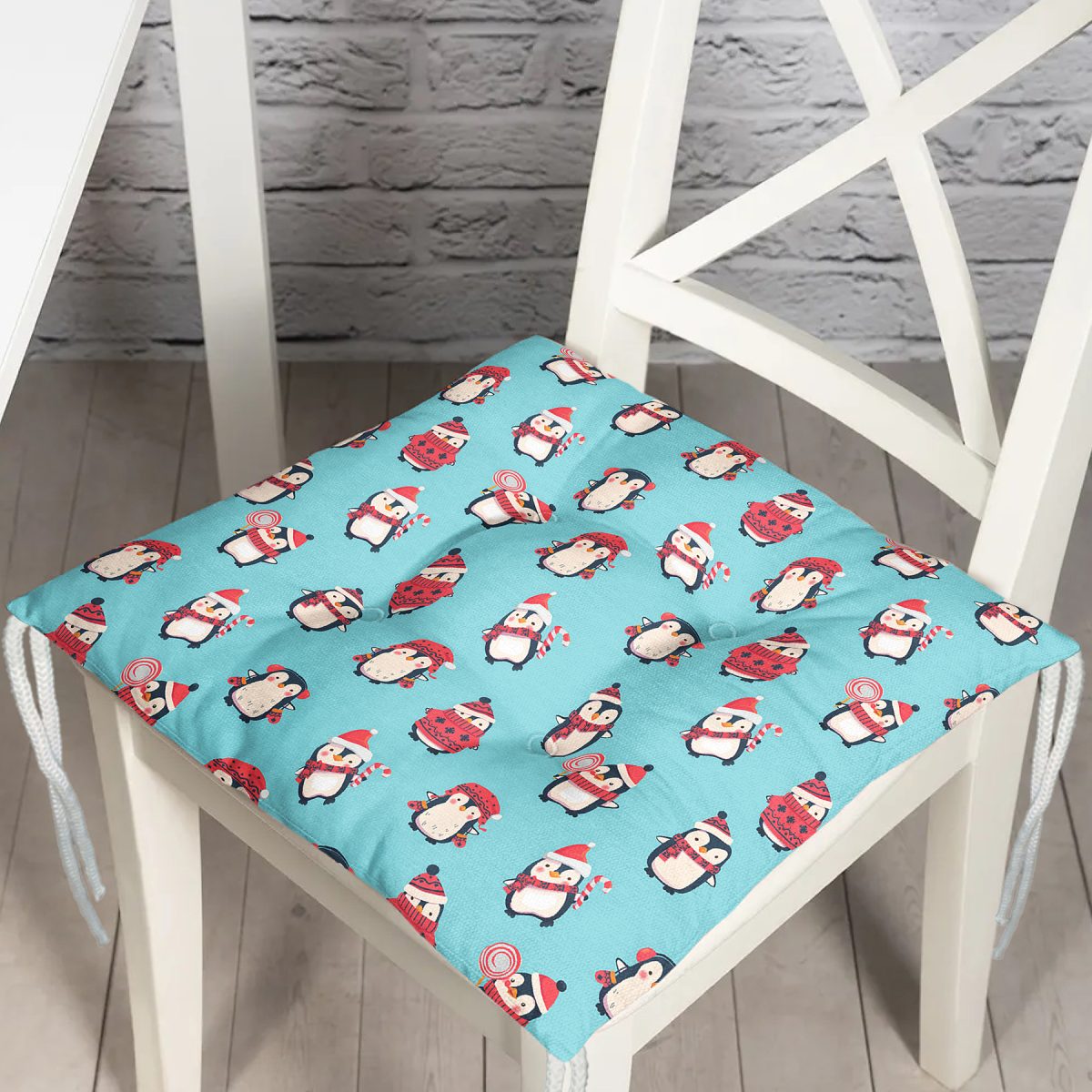 Atkı Ve Bereli Penguen Temalı Dijital Baskılı Özel Tasarım Modern Pofuduk Sandalye Minderi Realhomes