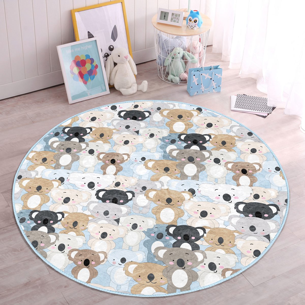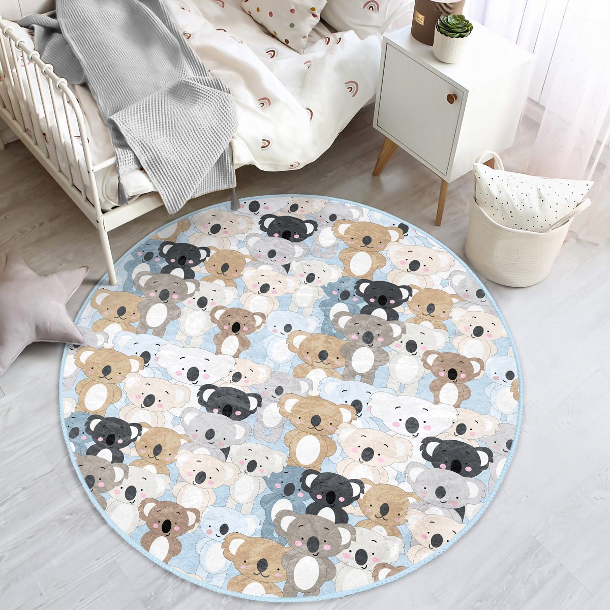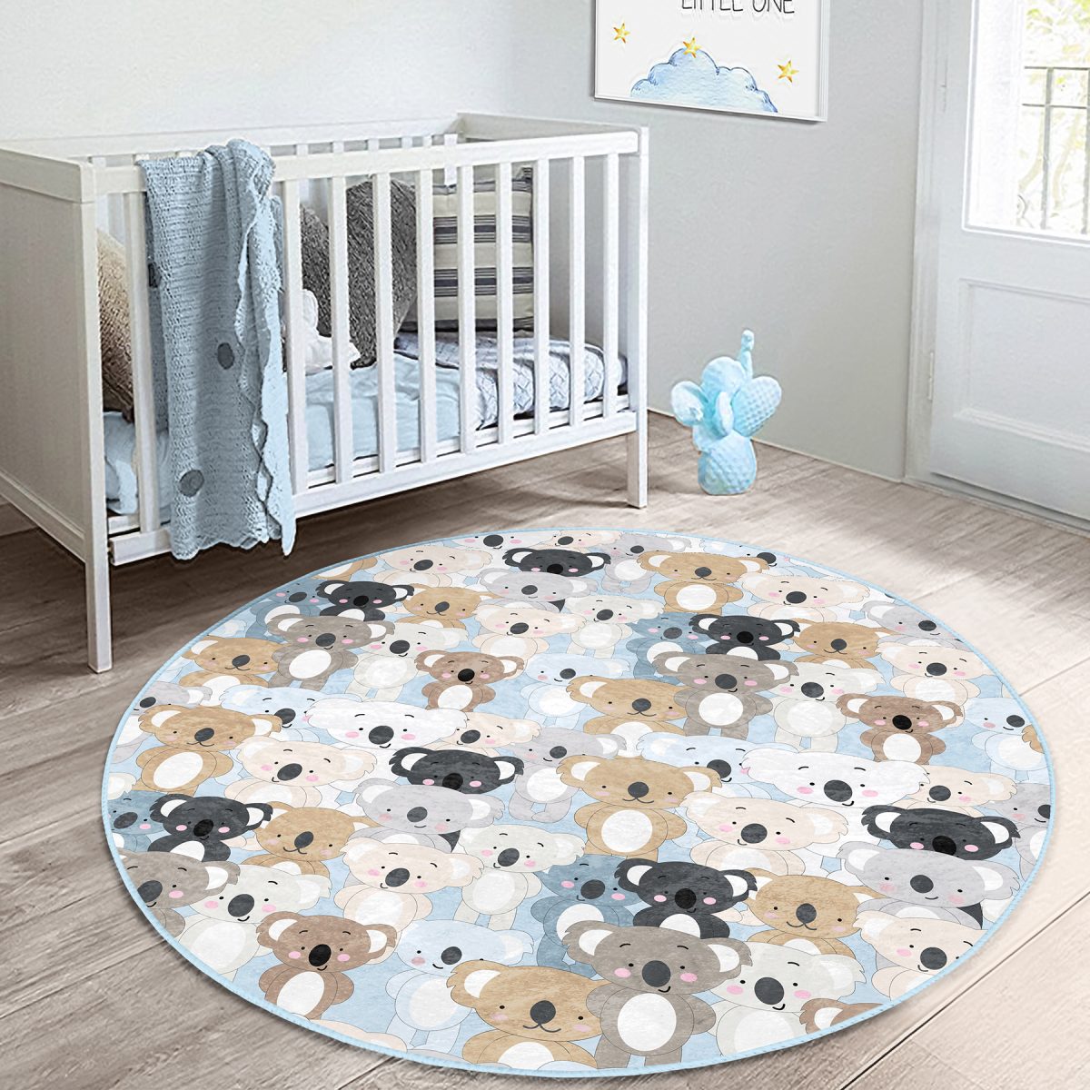Ayıcıklar Çocuk & Genç Odası Makinede Yıkanabilir Kaymaz Tabanlı Yuvarlak Çocuk Halısı