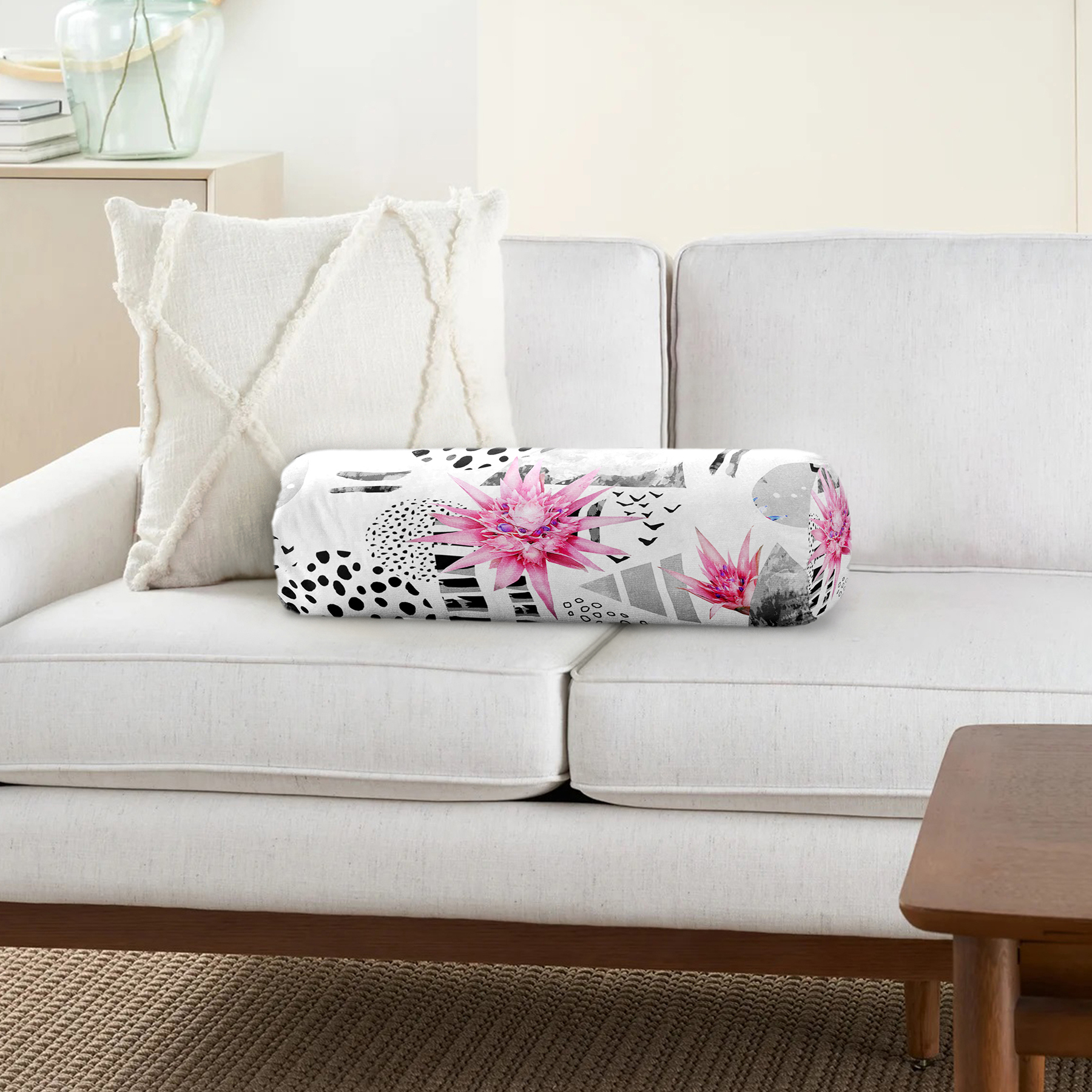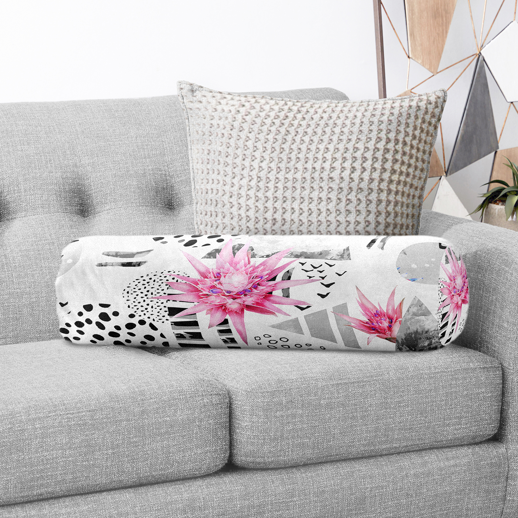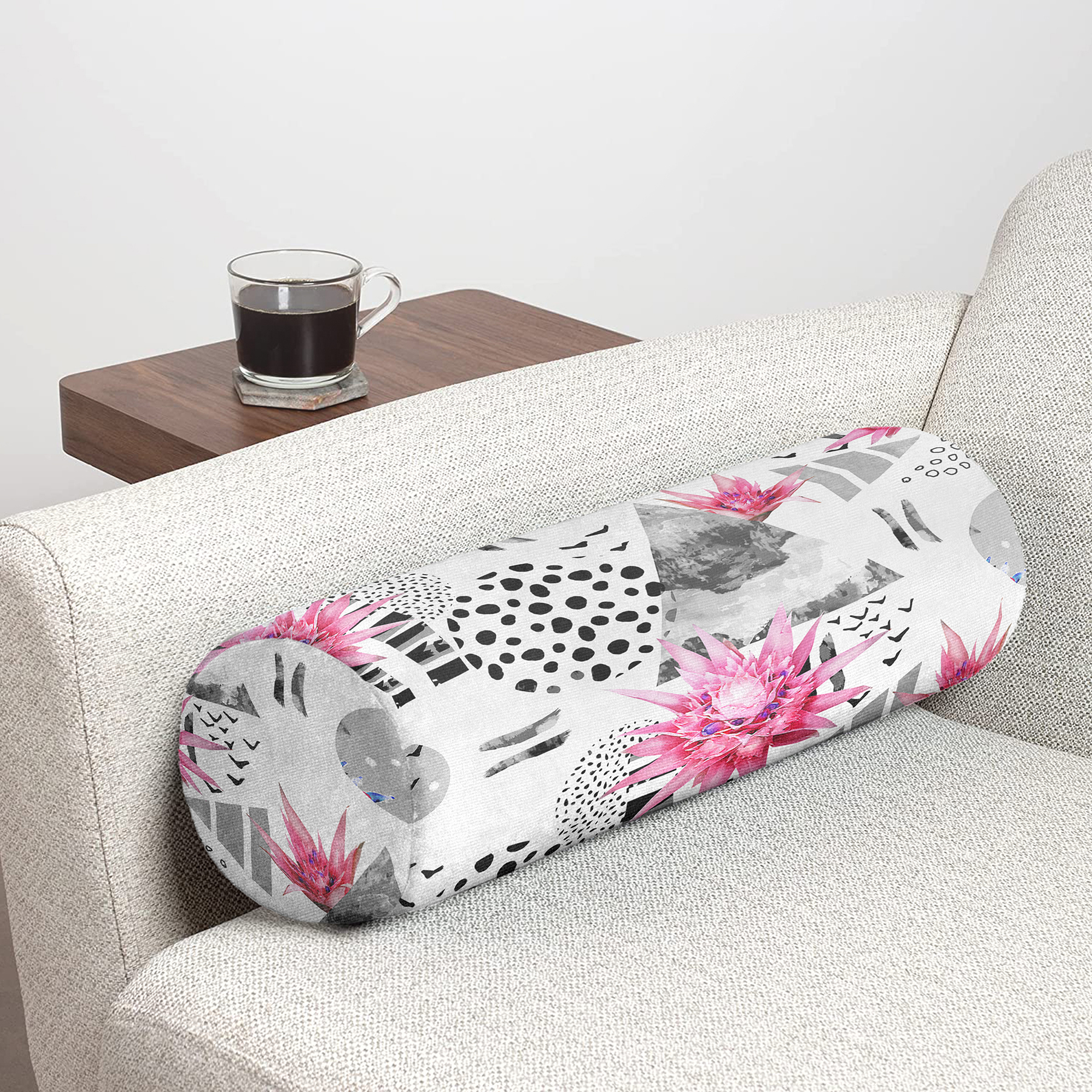 RealHomes Çok Amaçlı Dijital Baskılı Fermuarlı İç Dolgulu Süet Silindir Yastık