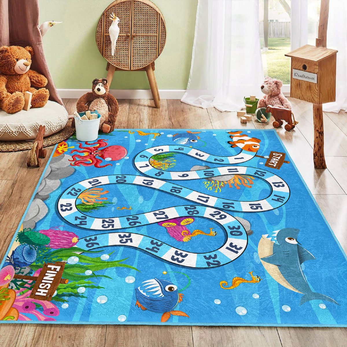Balıklar Adım Adım Finale Motifli Çocuk & Genç Odası Makinede Yıkanabilir Kaymaz Tabanlı Özel Ölçü Dikdörtgen Çocuk Oyun Halısı