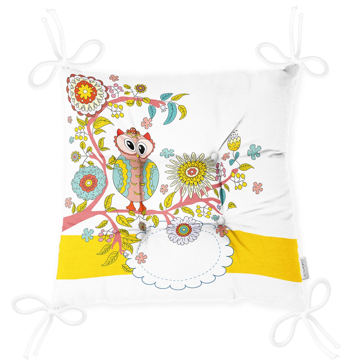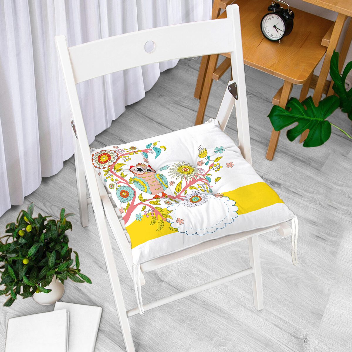 Baykuş Desen Dijital Baskılı Modern Pofuduk Sandalye Minderi Realhomes