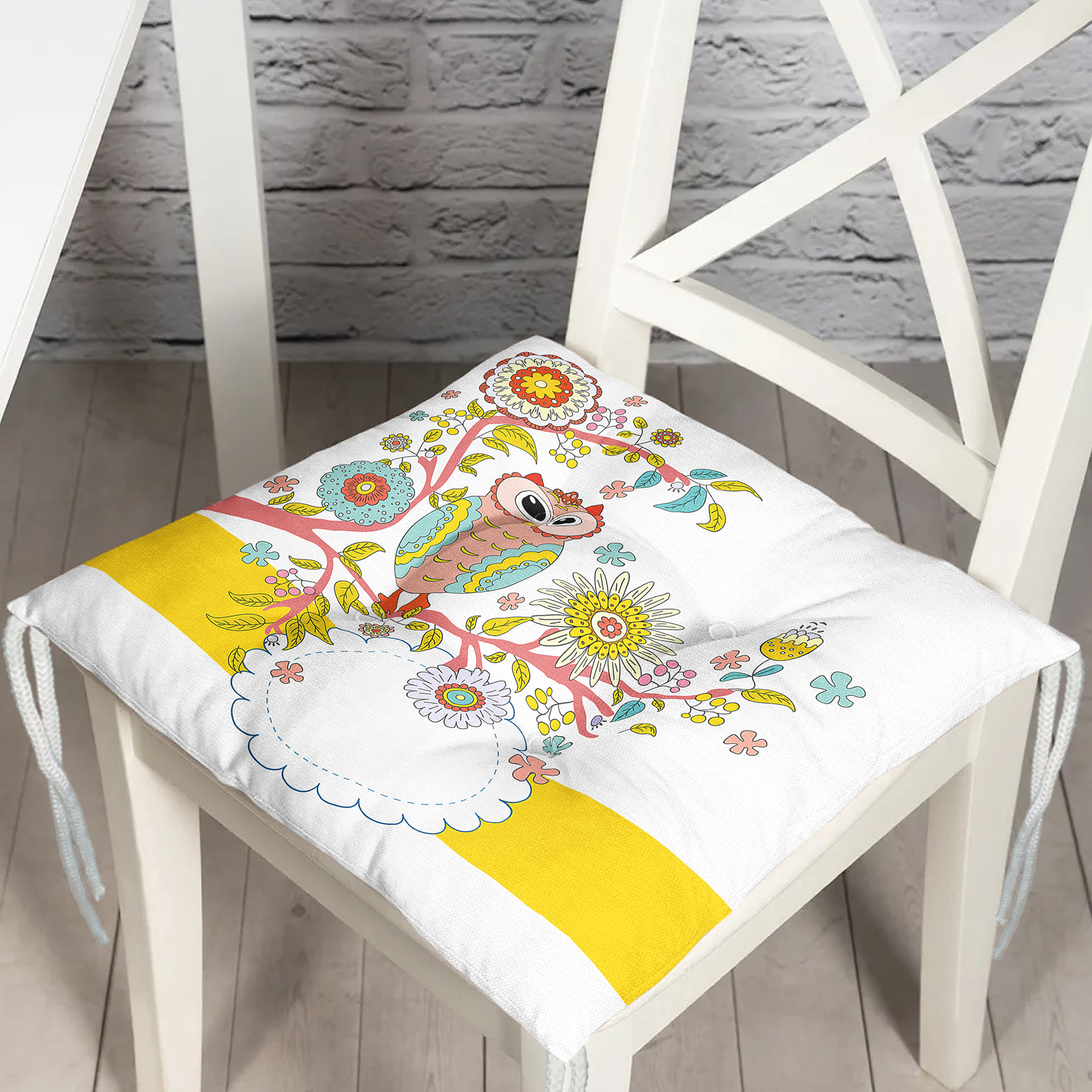 Baykuş Desen Dijital Baskılı Modern Pofuduk Sandalye Minderi