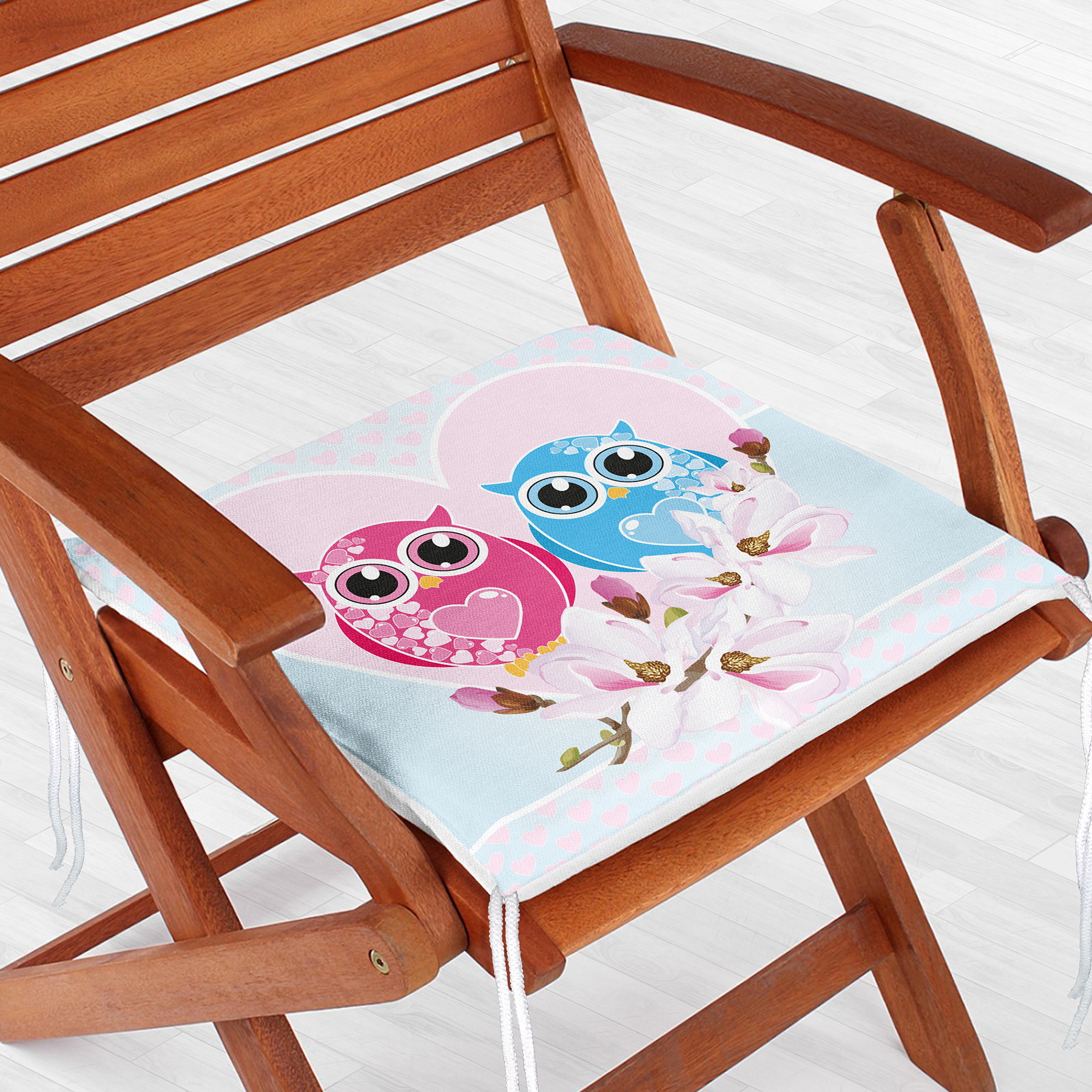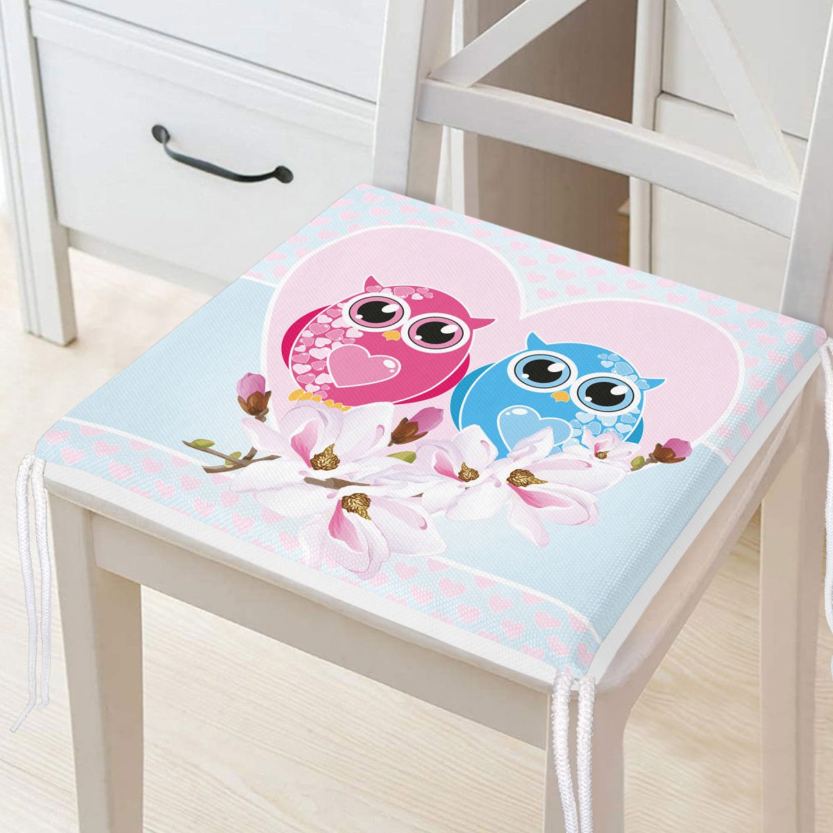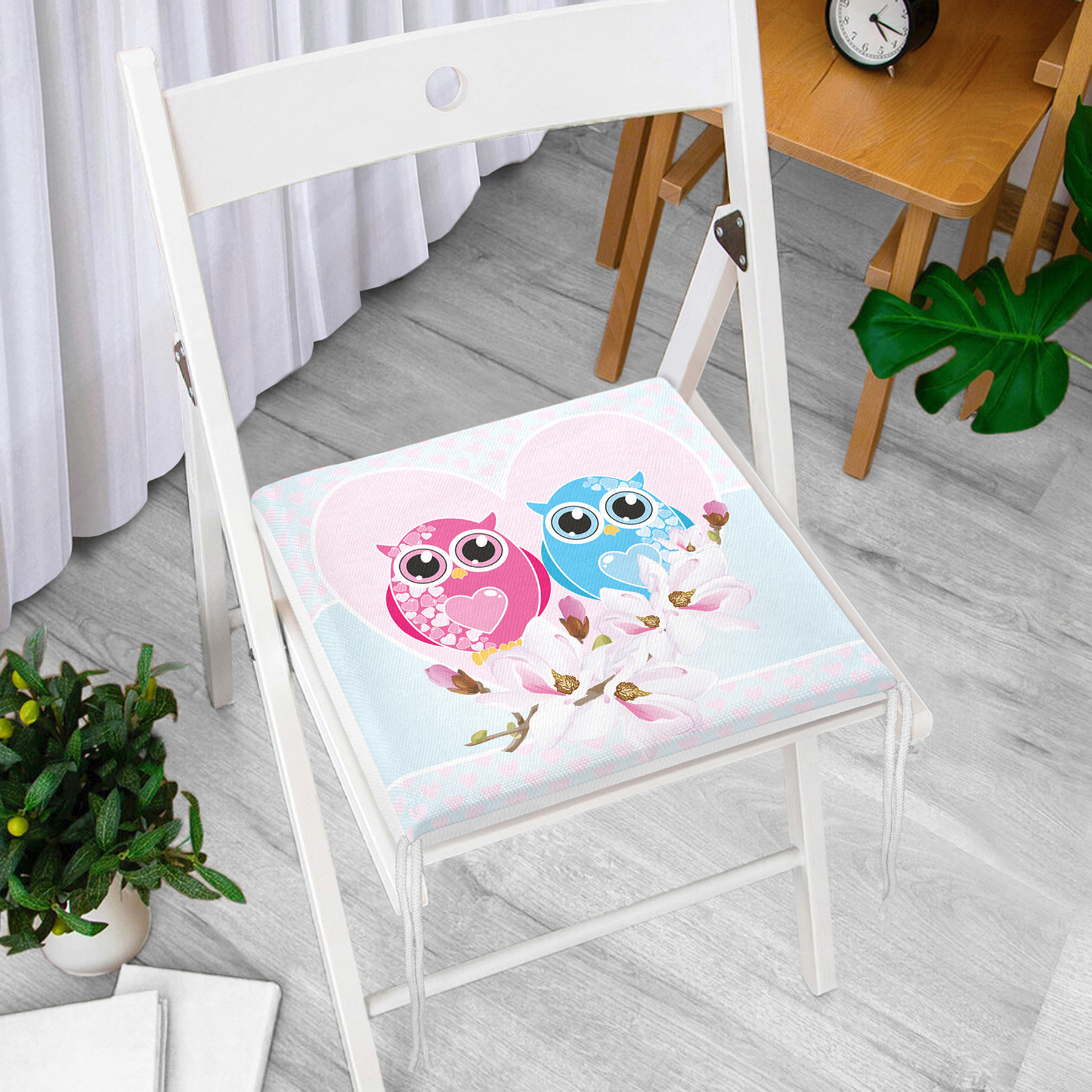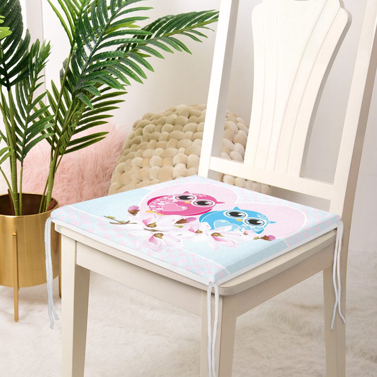 Baykuş Desenli Dekorati Kare Sandalye Minderi