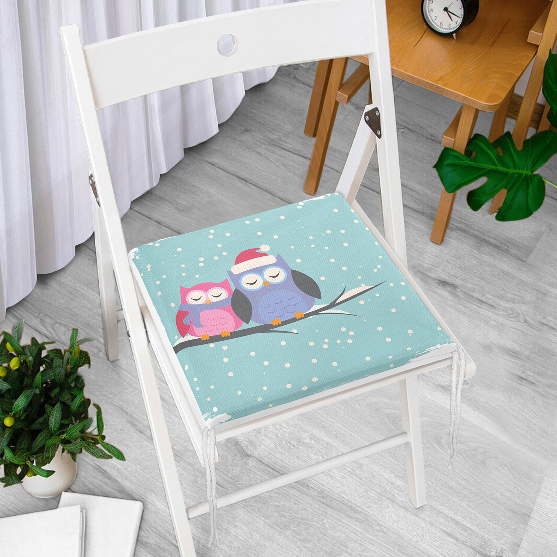 Baykuş Desenli Dekorati Kare Sandalye Minderi