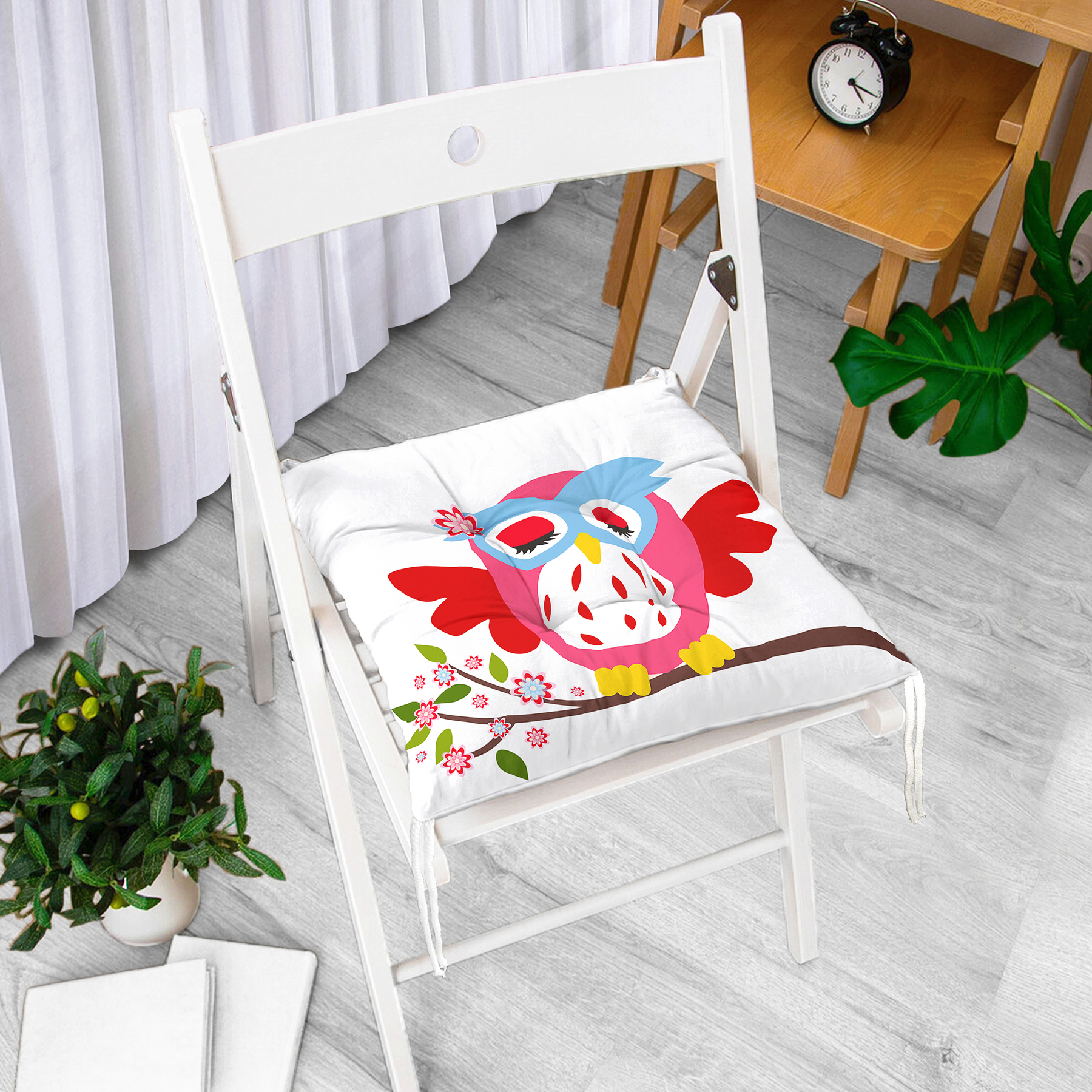 Baykuş Temalı Pofuduk Kare Sandalye Minderi 40x40cm Düğmeli