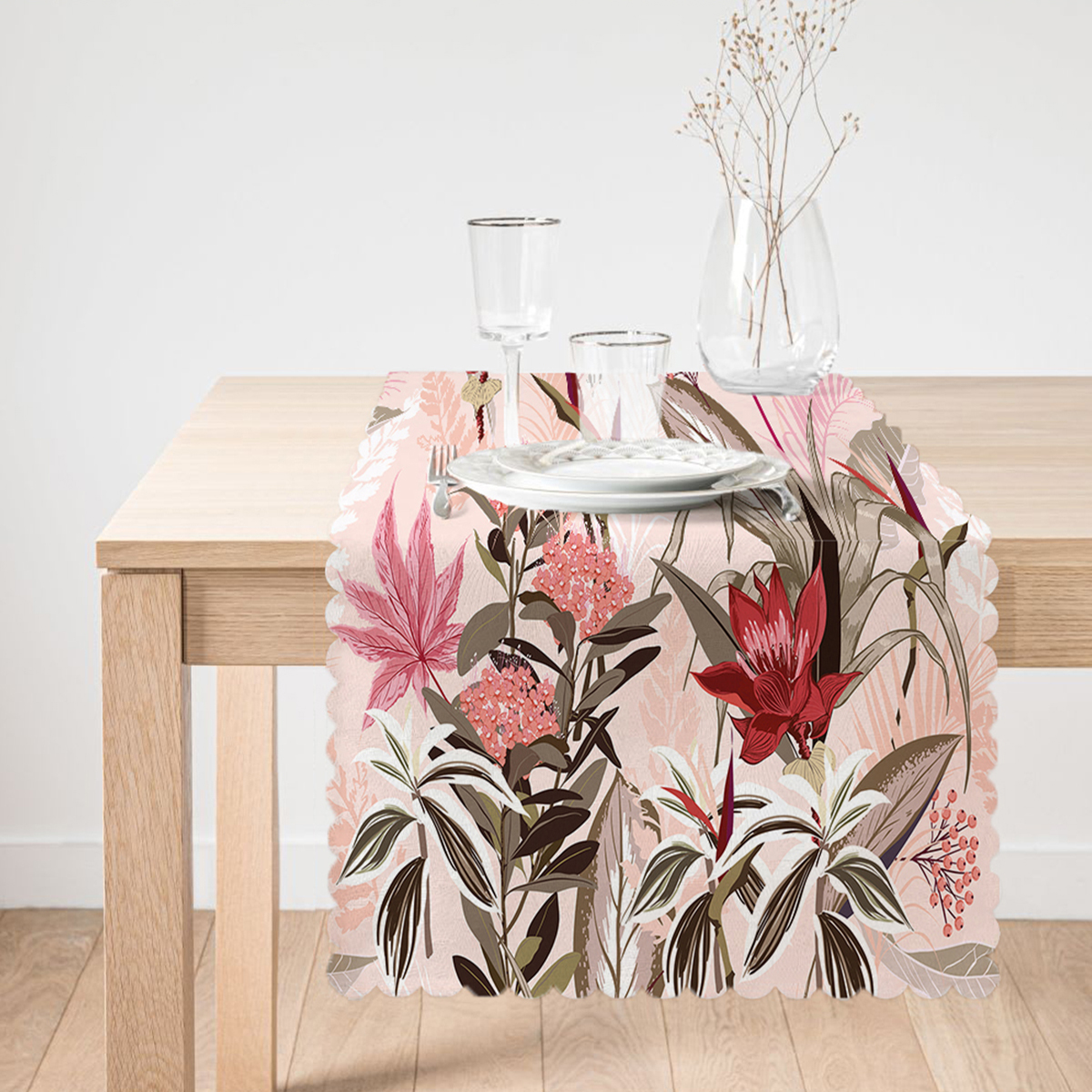 Bej Zeminde Çiçek Motifli Tasarım Dijital Baskılı Modern Runner