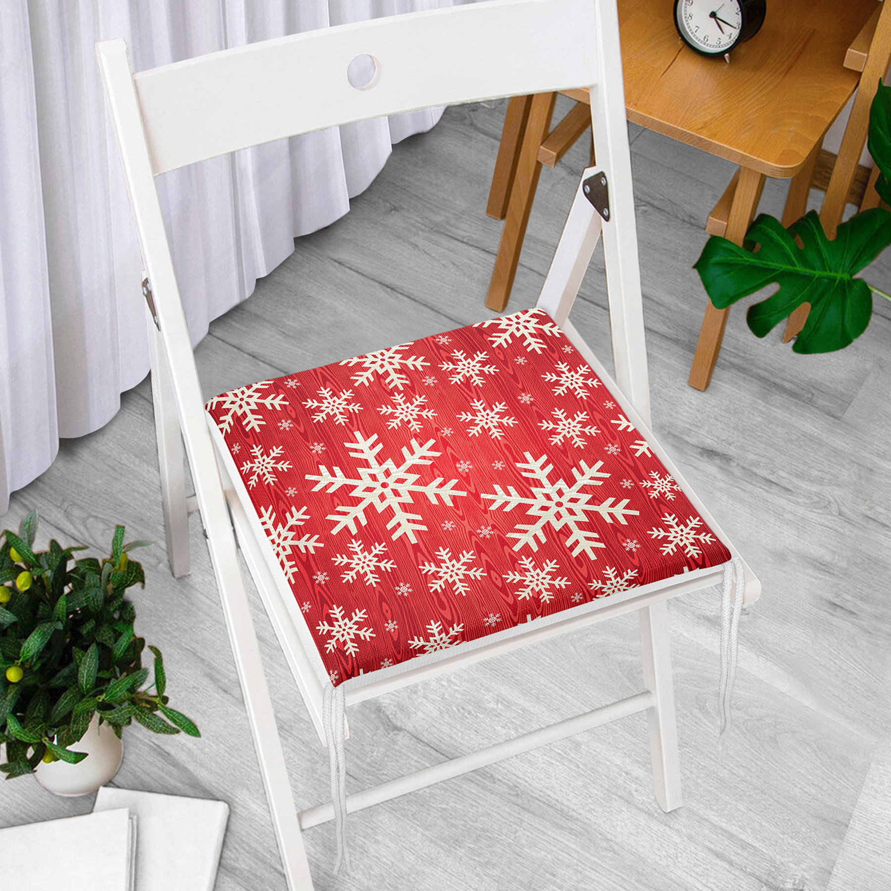 Beyaz Kar Taneleri Motifli Dijital Baskılı Dekoratif Fermuarlı Sandalye Minderi Realhomes