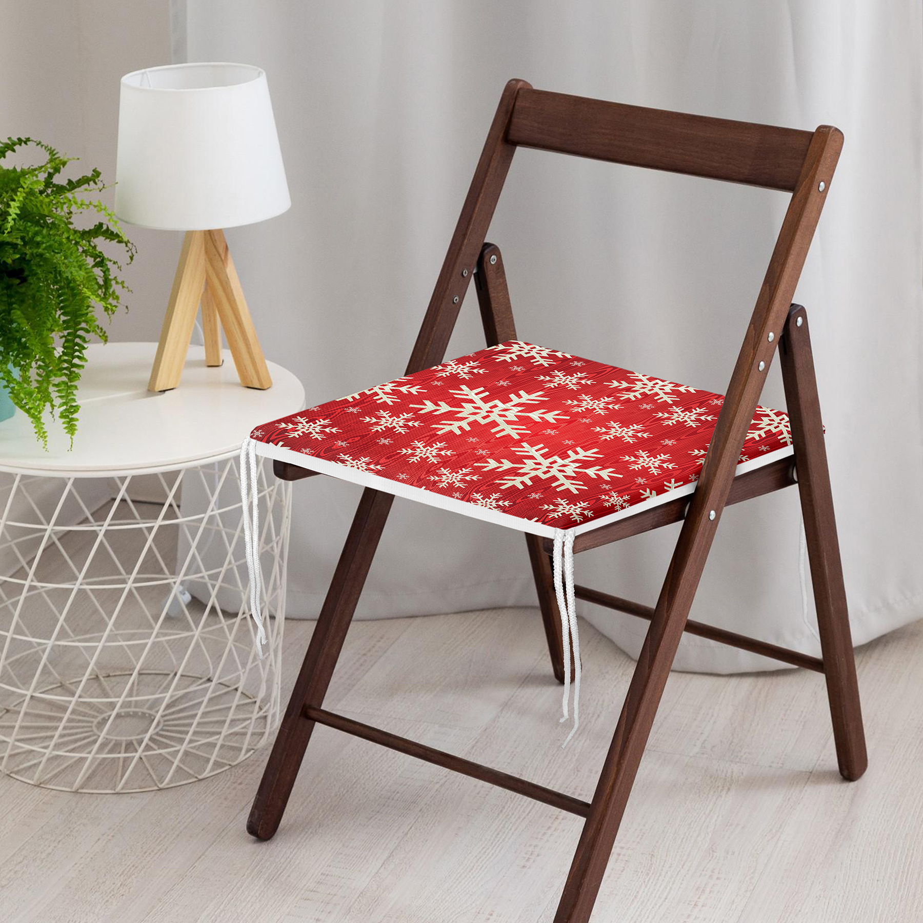 Beyaz Kar Taneleri Motifli Dijital Baskılı Dekoratif Fermuarlı Sandalye Minderi