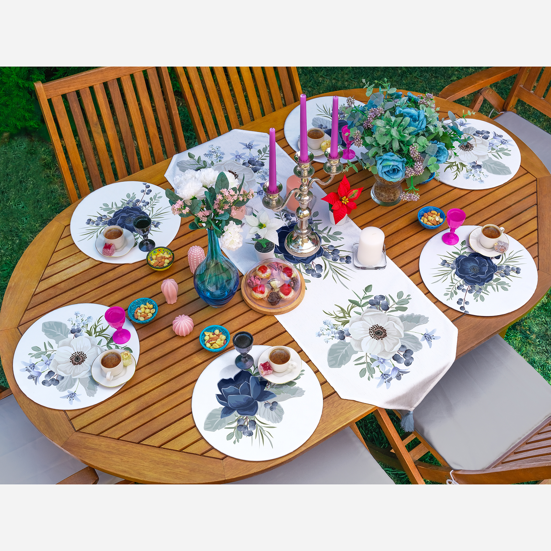Ürün Ölçüleri: Suplalar: 34 x 34 cm (Yuvarlak) – Runner: 45 x 140 cm