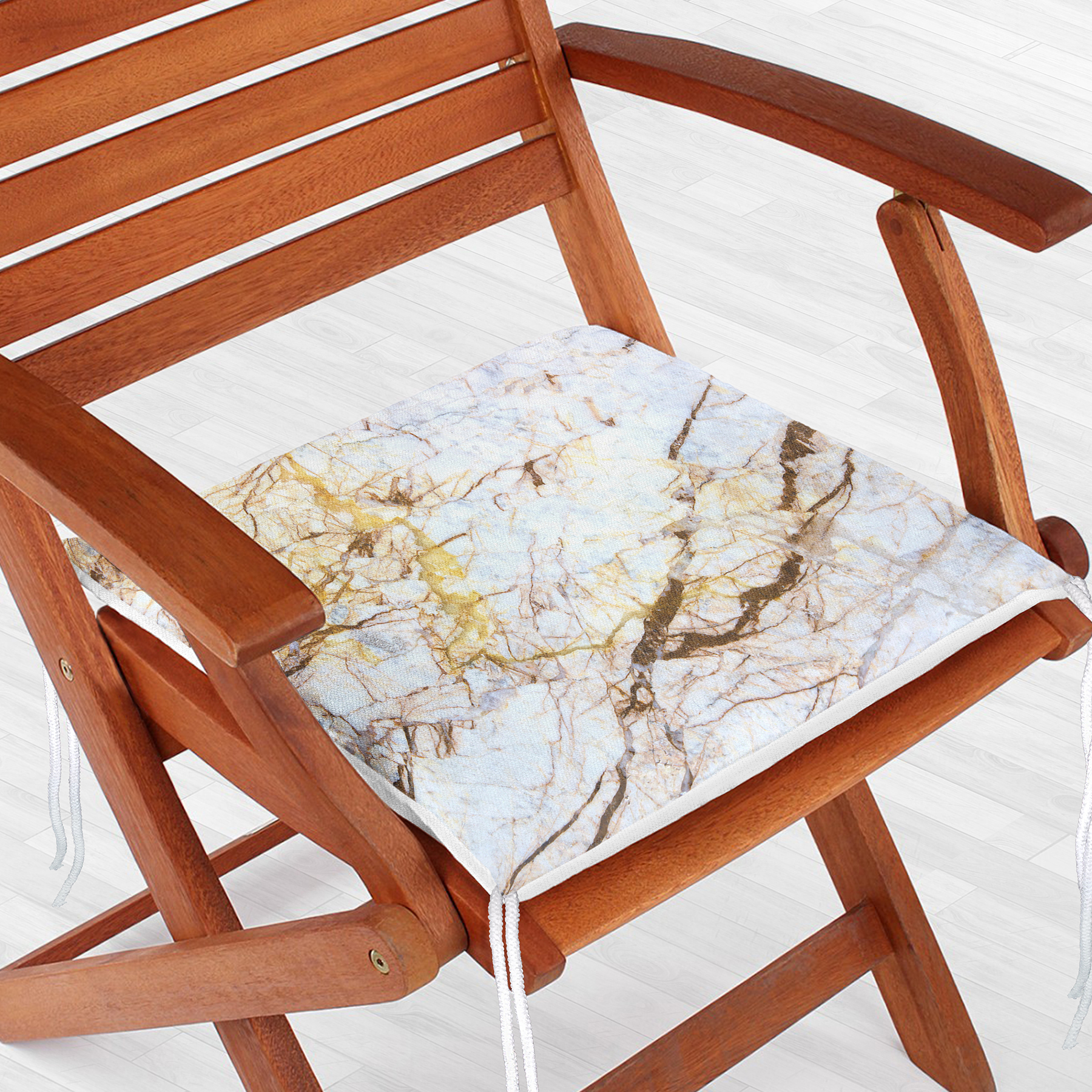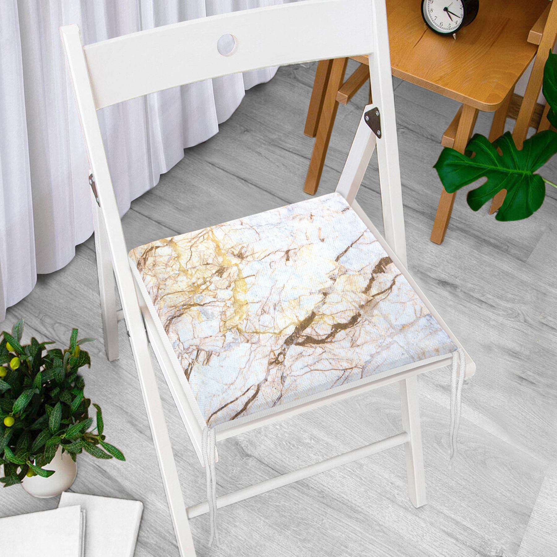 Beyaz Mermer Desenli Dijital Baskılı Fermuarlı Sandalye Minderi