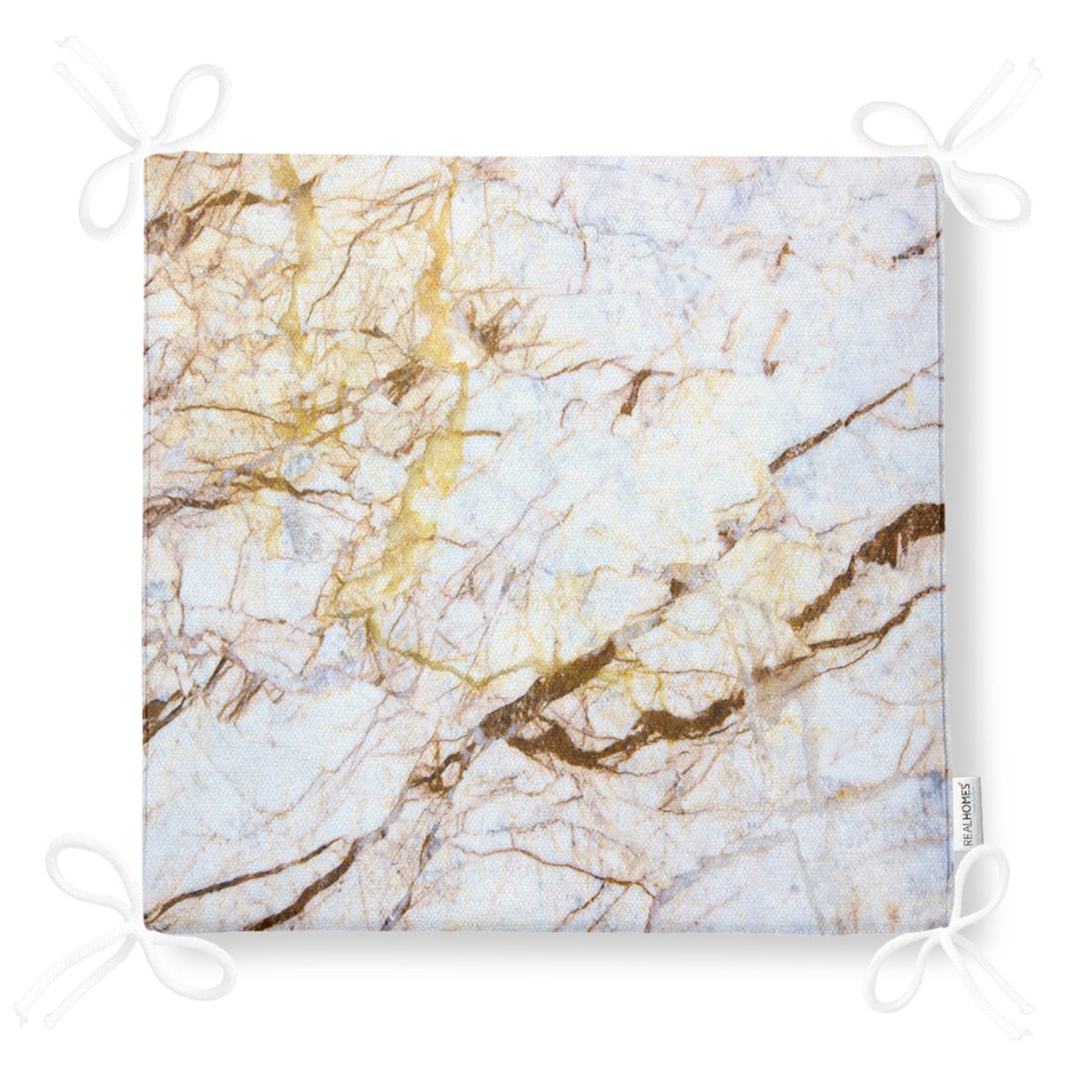 Beyaz Mermer Desenli Dijital Baskılı Fermuarlı Sandalye Minderi Realhomes