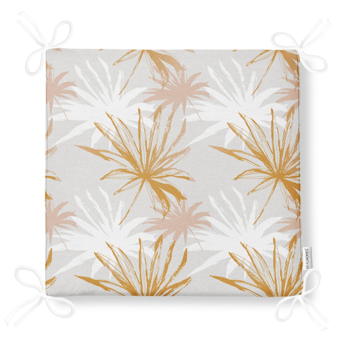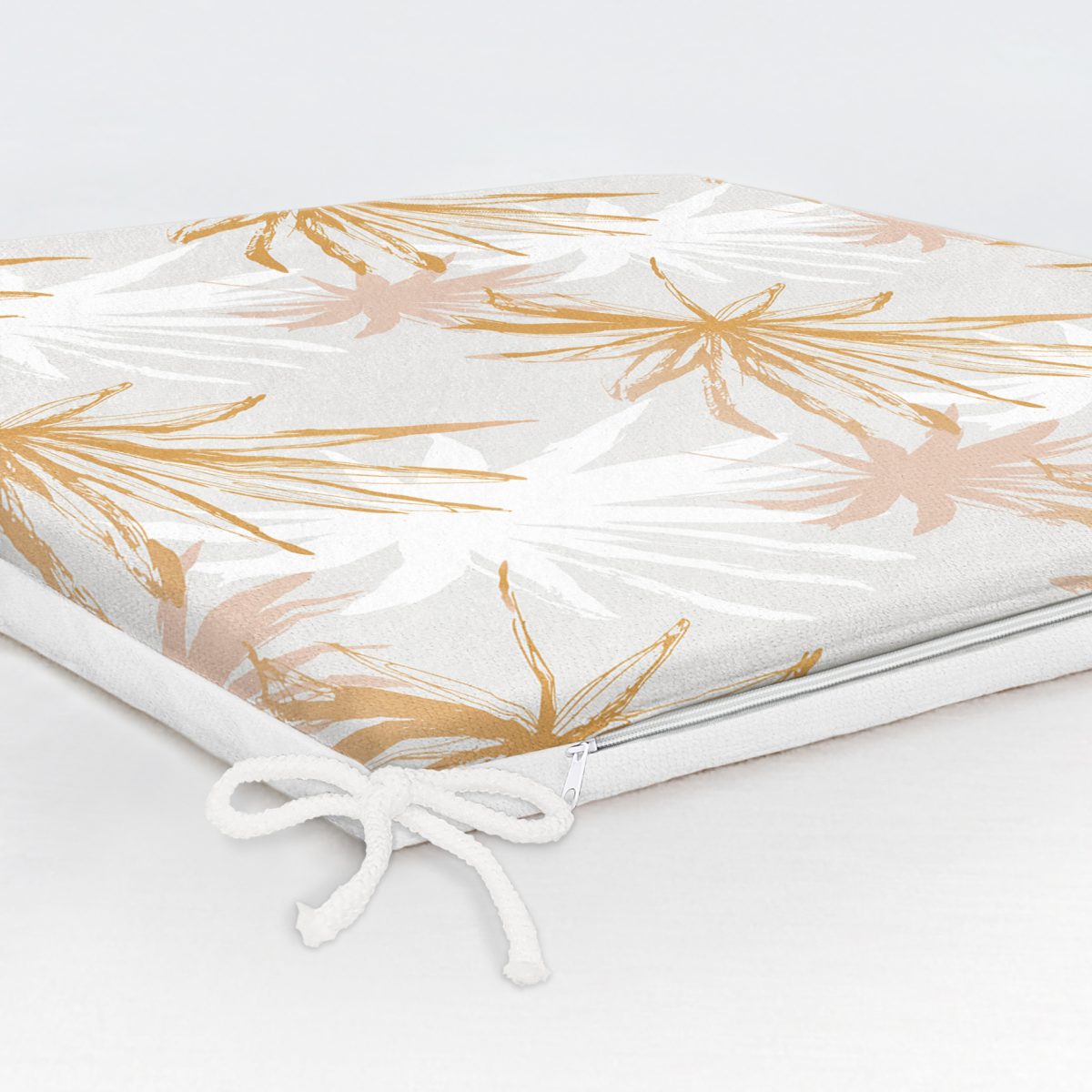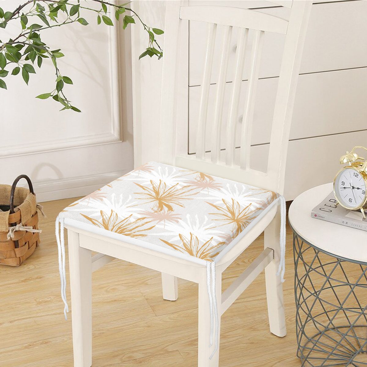Beyaz Ve Gold Yaprak Desenli Özel Tasarım Modern Fermuarlı Sandalye Minderi Realhomes