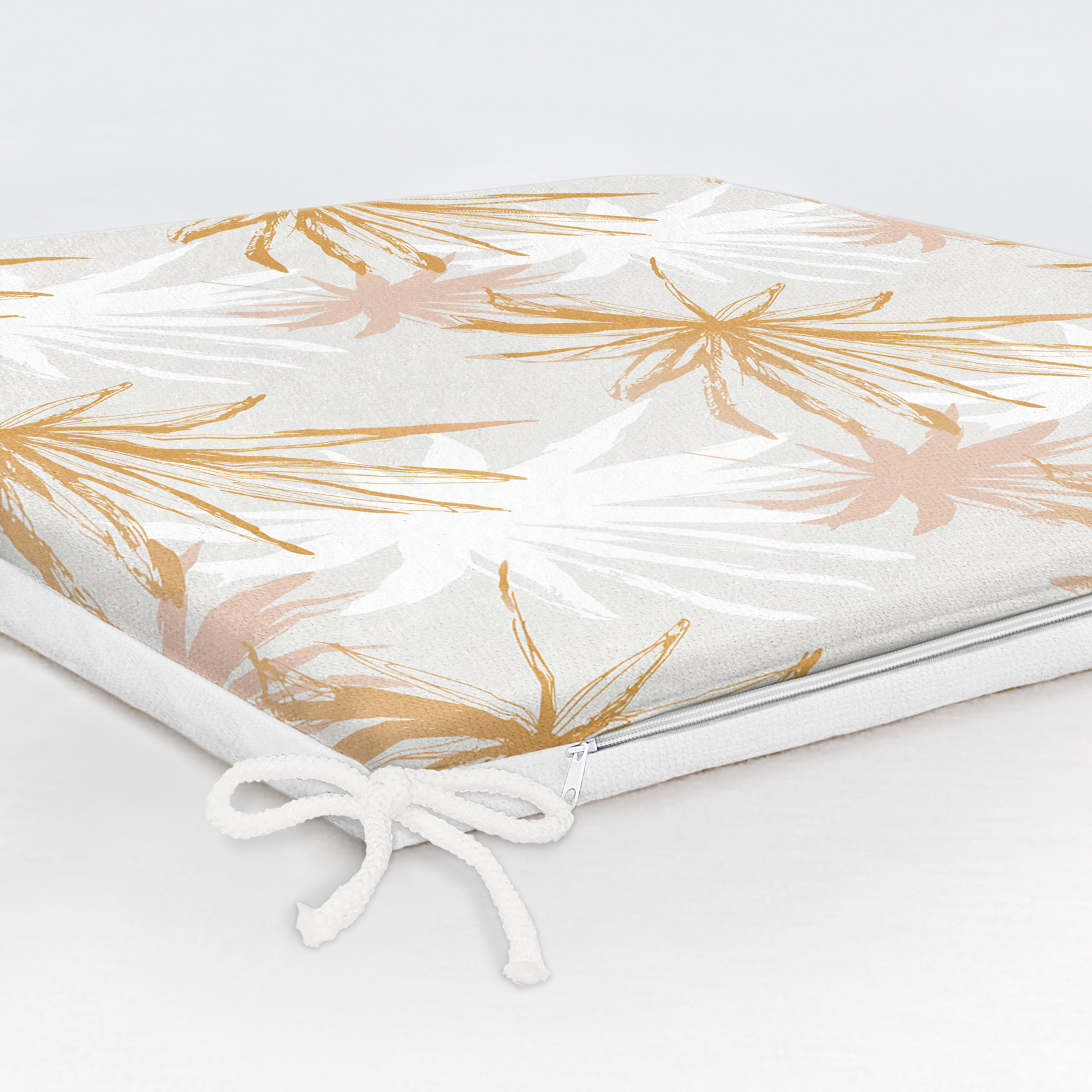 Beyaz Ve Gold Yaprak Desenli Özel Tasarım Modern Fermuarlı Sandalye Minderi