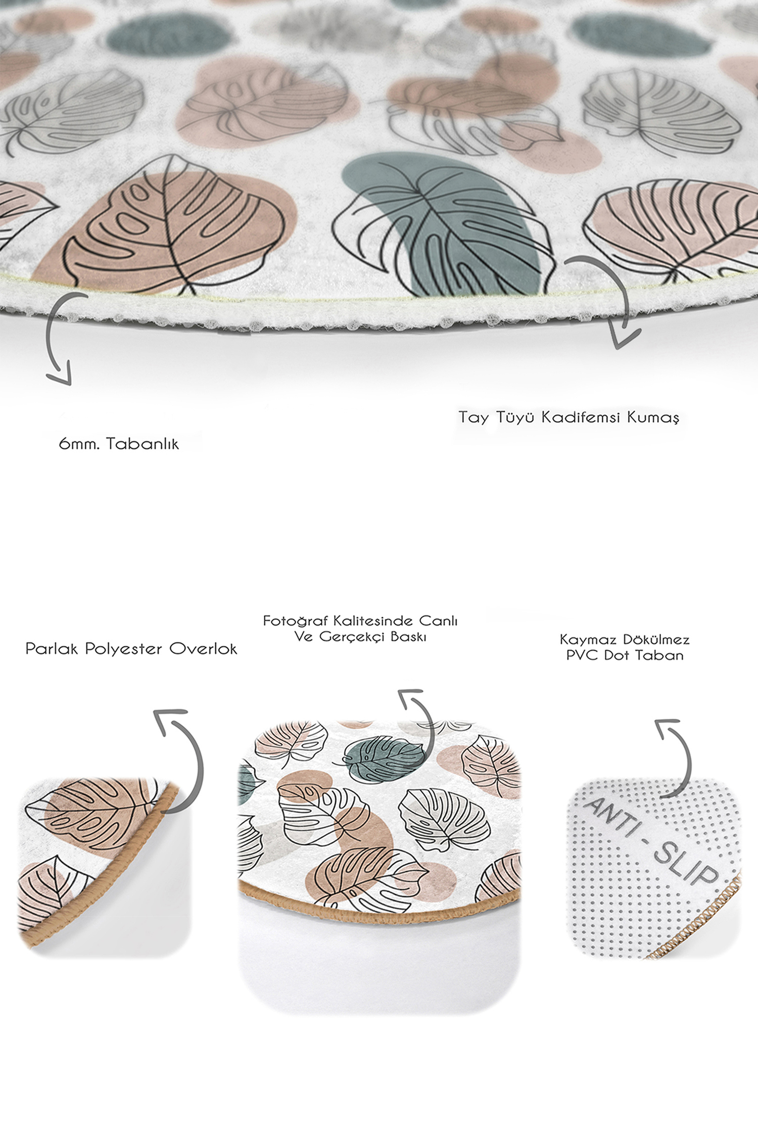Tabanlık ve Dolgu: 6 mm Kaymaz dokuma tabanlıdır.