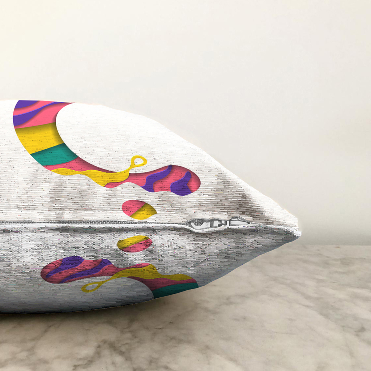 Beyaz Zemin Renkli Ç Harfli Özel Tasarım Dijital Baskılı Raşel Kadife Yastık Kırlent Kılıfı