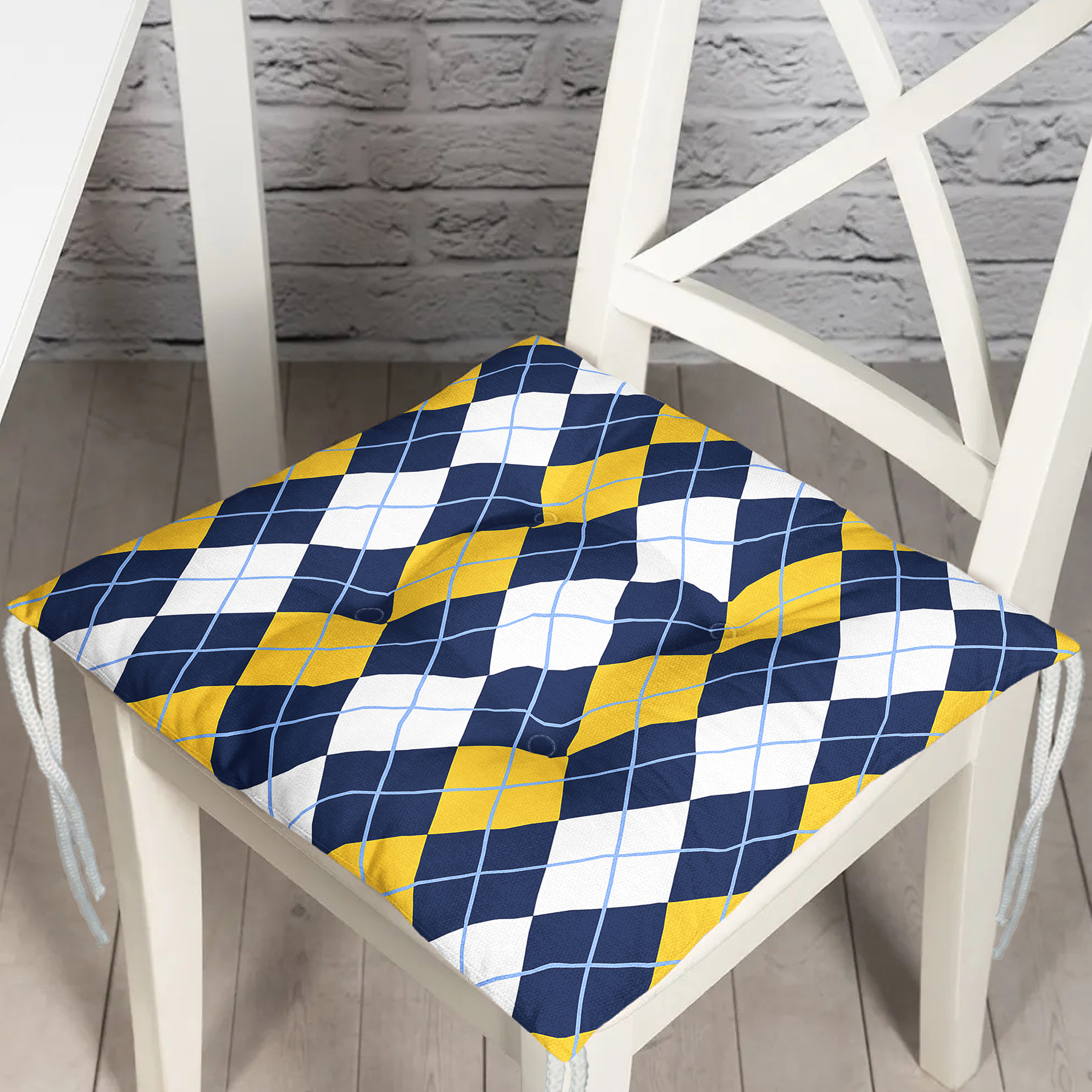 Beyaz Zemin Üzerinde Baklava Desenli Dijital Baskılı Modern Pofuduk Sandalye Minderi