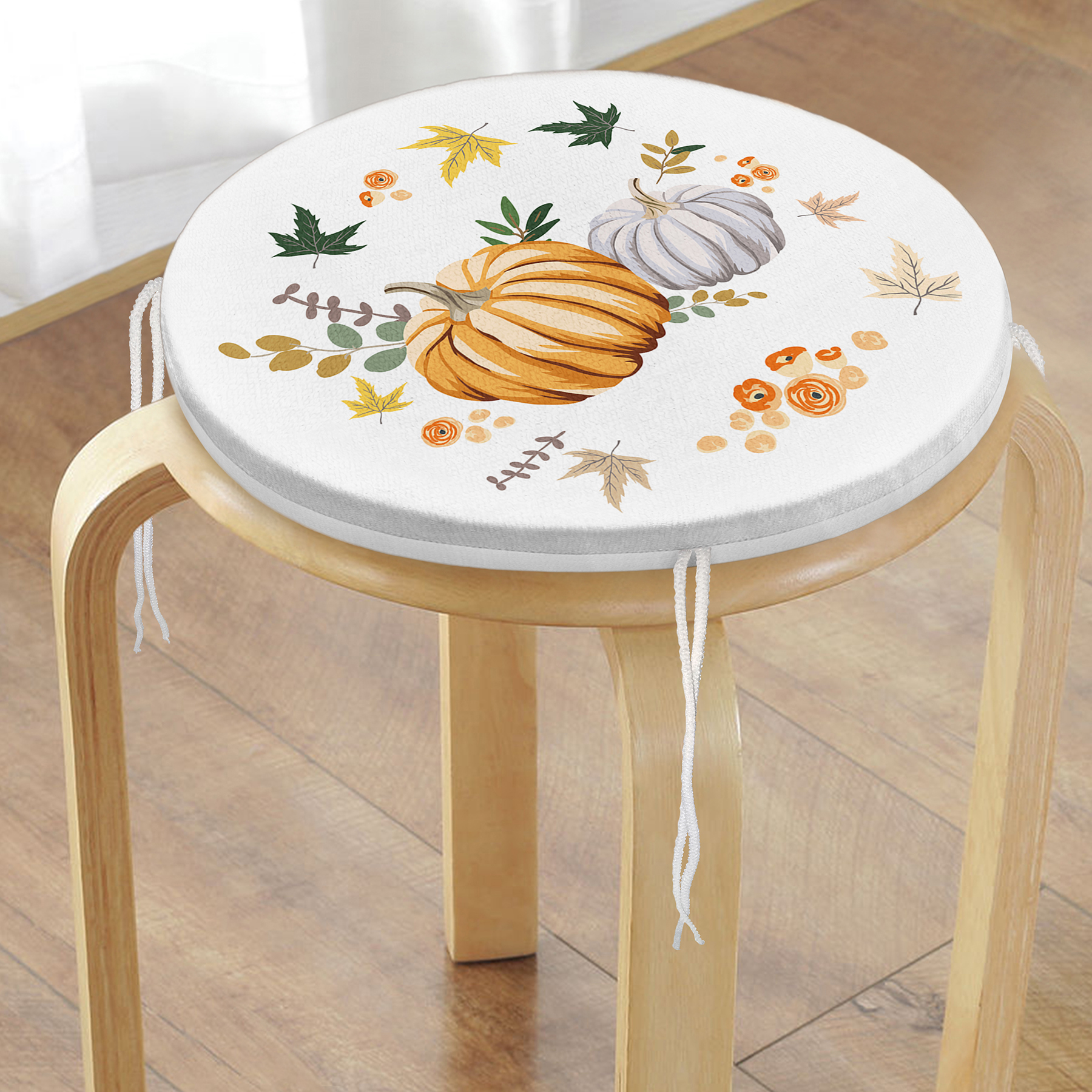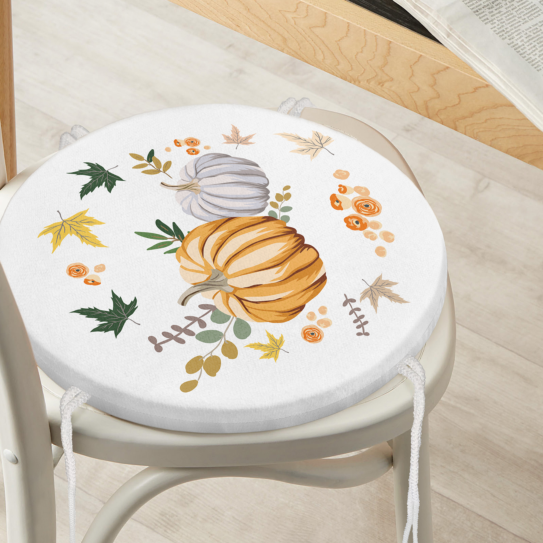 Beyaz Zemin Üzerinde Bal Kabağı Desenli Dijital Baskılı Modern Yuvarlak Fermuarlı Sandalye Minderi