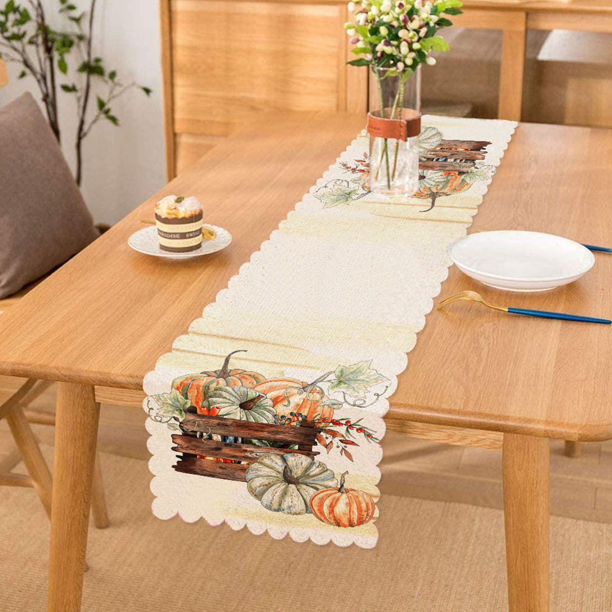 Beyaz Zemin Üzerinde Balkabağı Desenli Dijital Baskılı Modern Runner